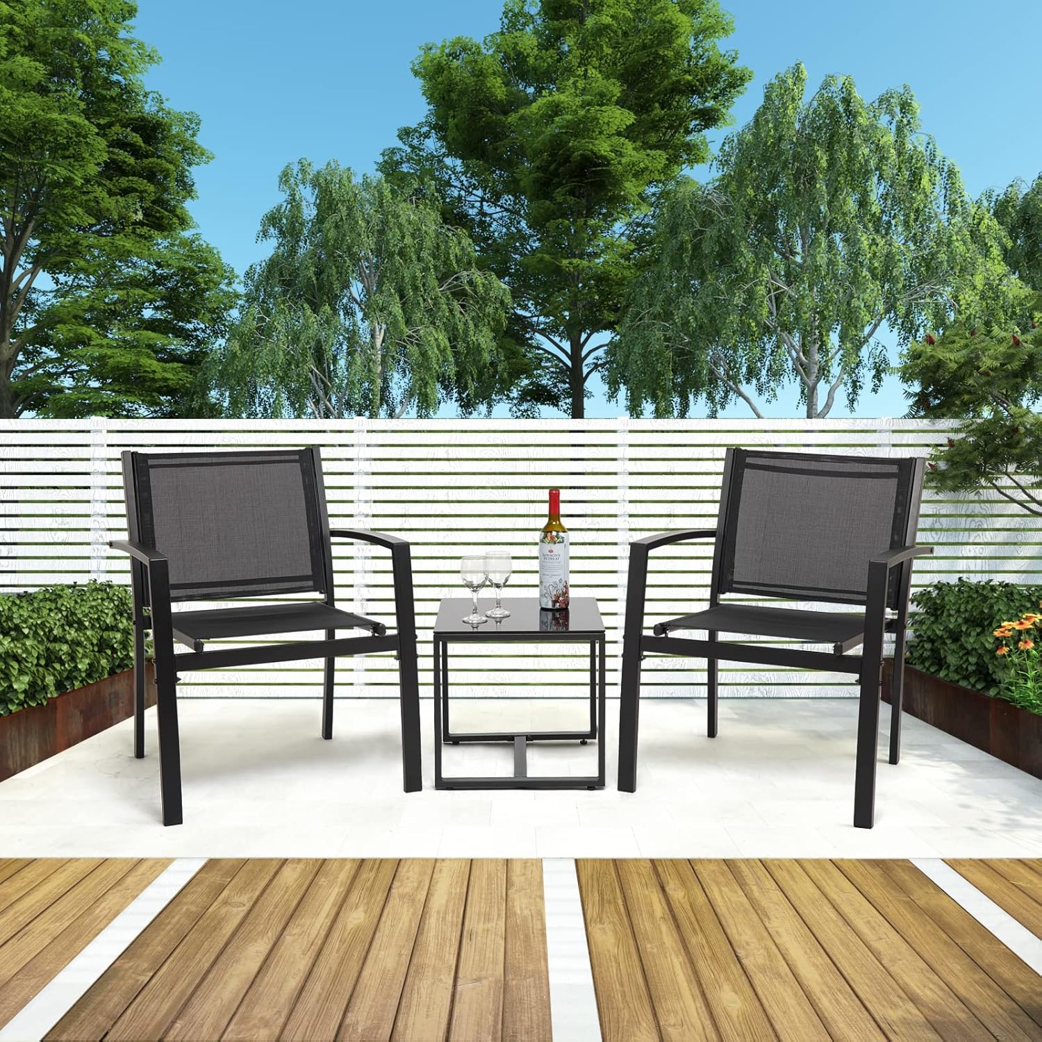 Mondeer Garden Furniture Set 3 Pieces, Outdoor Textilene Furniture Set, Indoor Outdoor Furniture Dining Set for Garden Patio Lounge Balcony, W60 x H77.5 x D63 cm, Black
