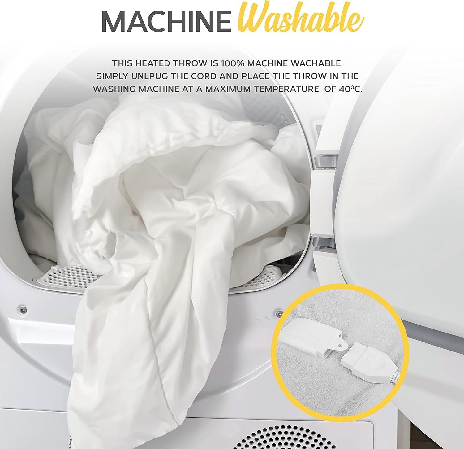 The remote control and cable are fully detachable, allowing this heated throw to be washed at cool temperatures (maximum of 40°C). It’s easy to keep your heated blanket clean and comfortable for years to come.