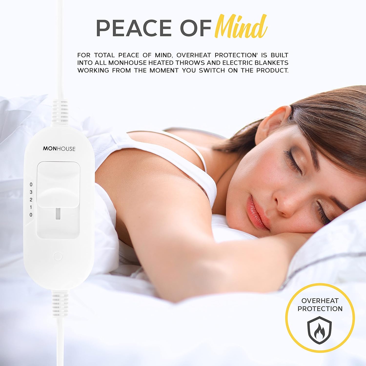 Feel the warmth radiate throughout your entire body with this heated under blanket by MONHOUSE. Curl up and relax with the softness needed to shake off those winter chills – our electric heated under blanket is made of super-soft and warm non-woven fabric. The adjustable thermostat provides you with control over your desired warmth. It comes with 3 heat settings and over-heating protection, giving you complete heating flexibility so you can sleep comfortably with peace of mind.