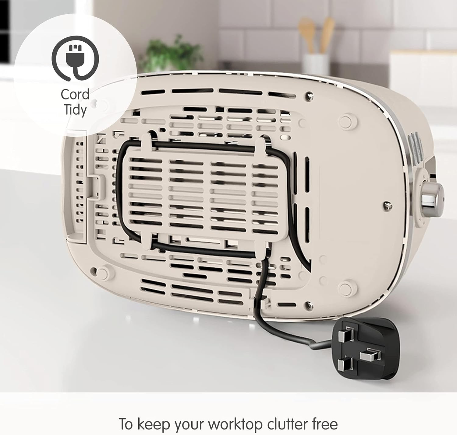 The built-in cord tidy enables you to keep your worktop clutter free by concealing any excess, unneeded cord.