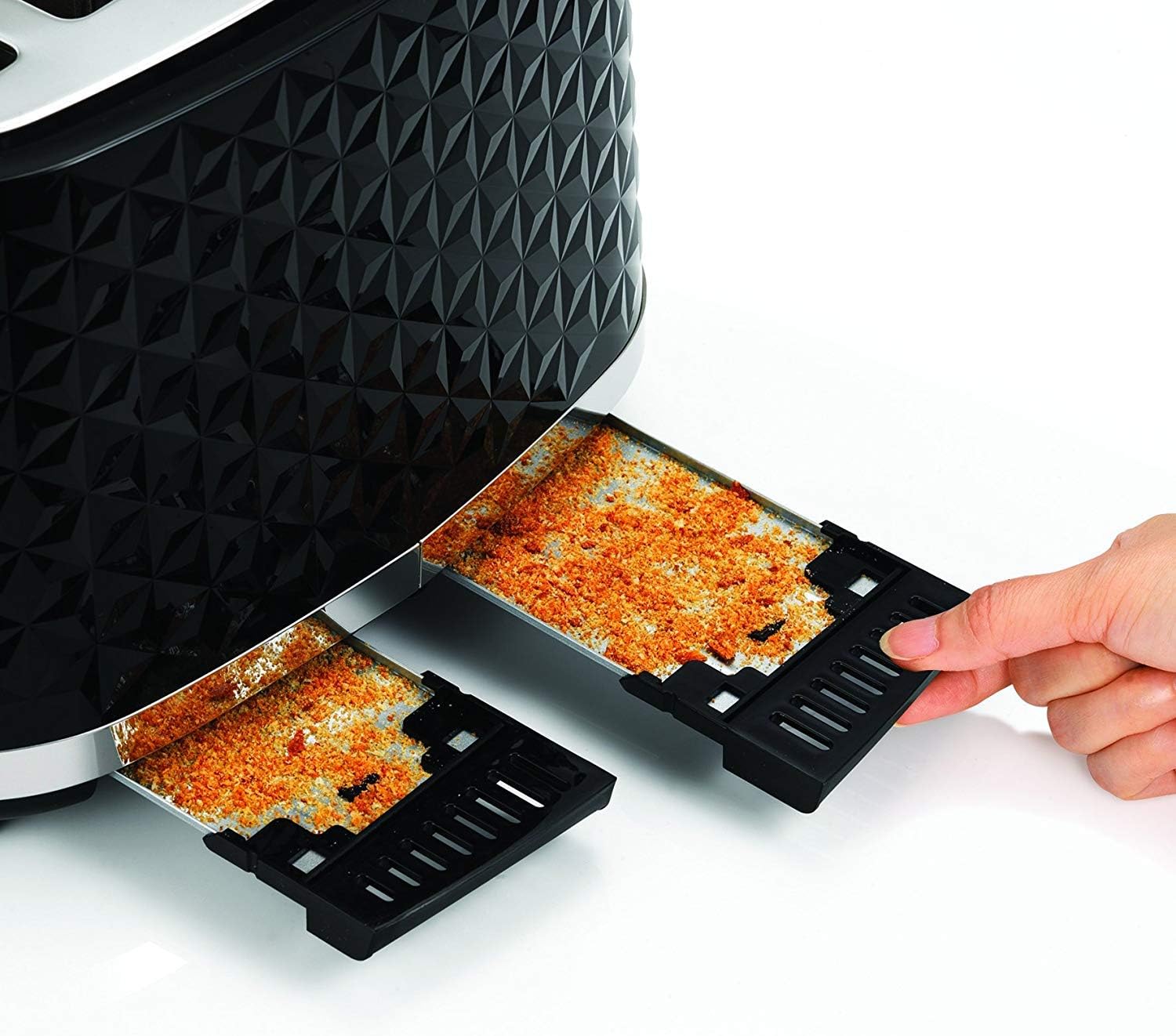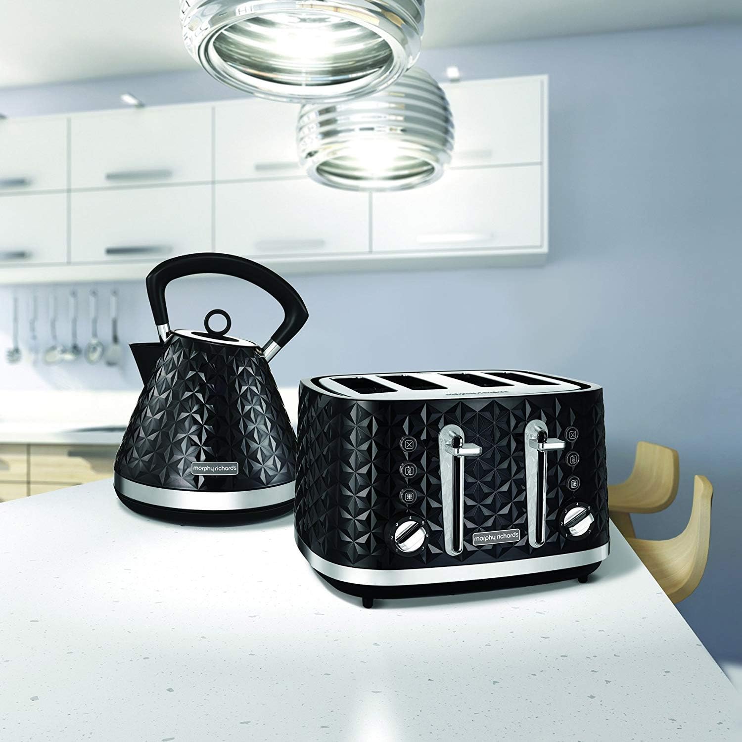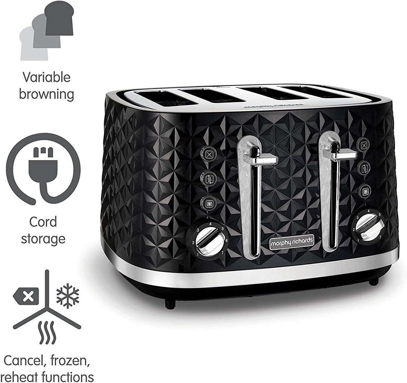 Morphy Richards Vector 4 Slice Toaster, High Gloss Geometric Design, Defrost and Reheat, Variable Width Slots, Removeable Crumb Tray, Black, 248131