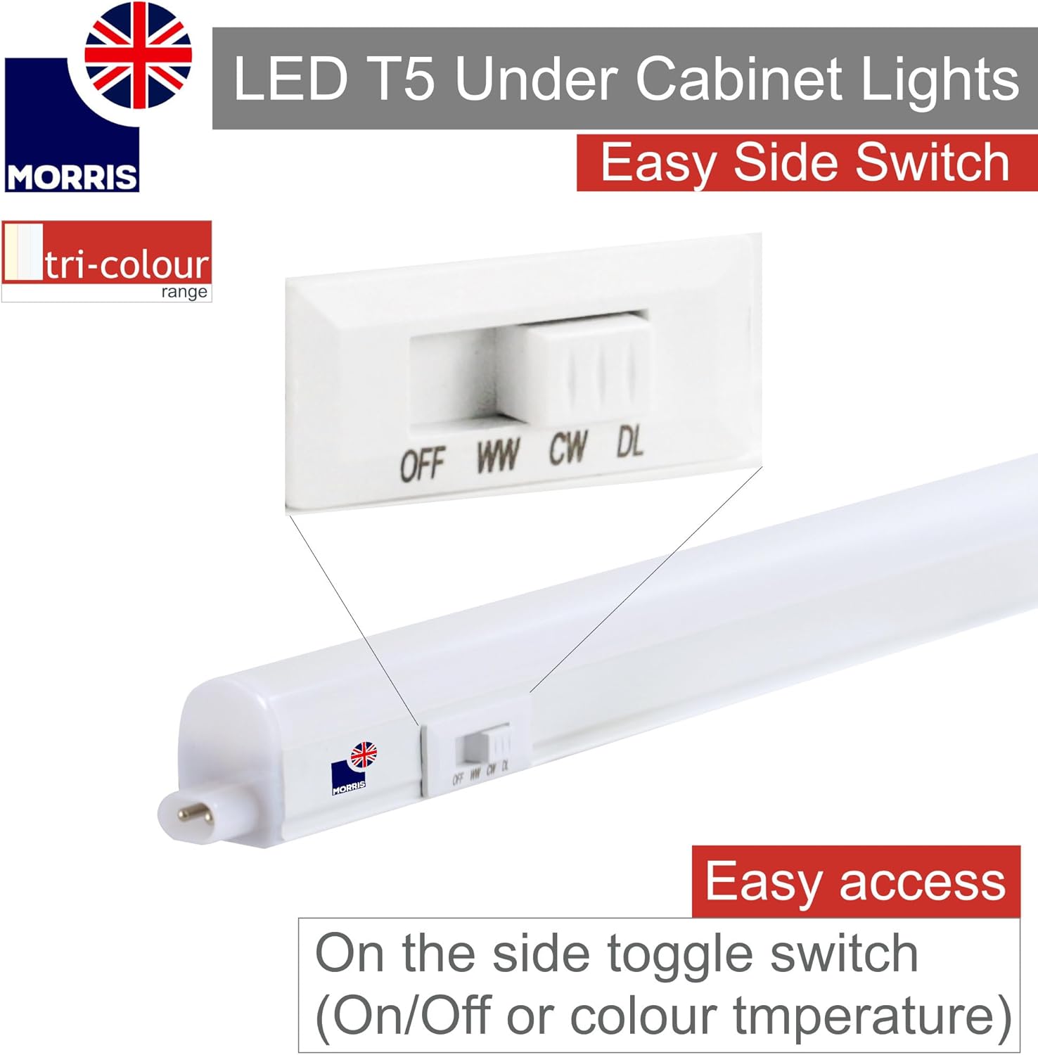 Elevate your space with Morris Connectible Tri-Colour (3CCT) LED T5 Under Cabinet Lights! Versatile and energy-efficient, they transform your home or workspace. Switch between warm (300K), natural (4000K), and cool white (6500K) lighting. Illuminate wardrobes, workbenches, bookshelves, and more. Sleek design. Morris lights: where practicality meets aesthetics!