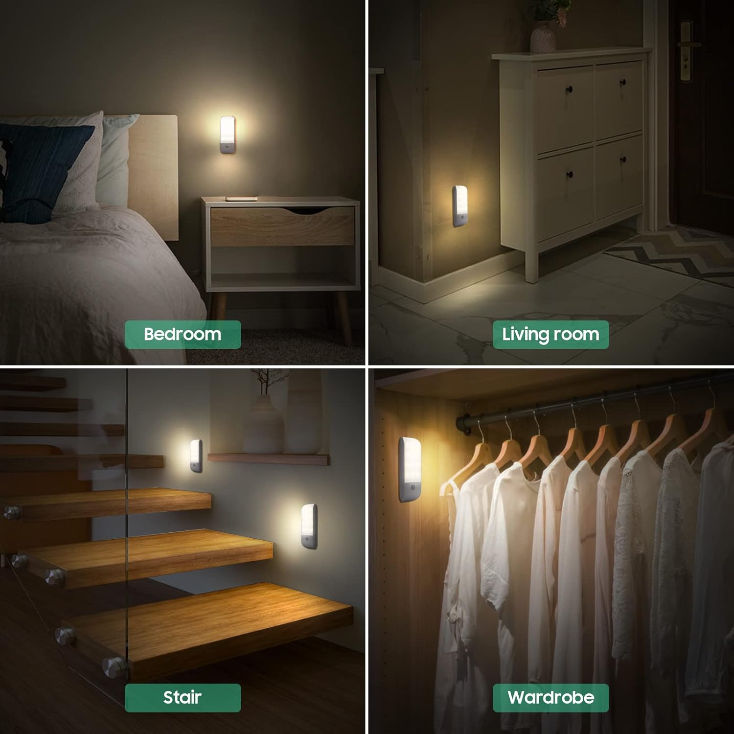🌞[Bright and Soft Light]: Each motion sensor night light possess 12LEDs, the brightness exceeds 180 lumens, 4000K natural white light is mild and bright but not dazzling, makes your eyes feel more comfortable, this night light is the best companion in dark.