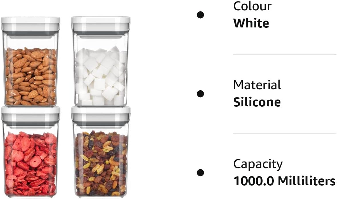 MR.SIGA 4 Pack Airtight Food Storage Container Set, BPA Free Kitchen Pantry Organization Canisters with One-handed Leak Proof Lids, 1L / 33.8oz, Medium, White