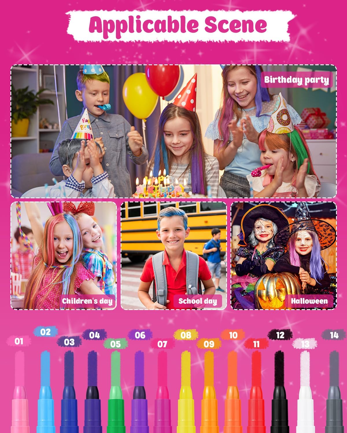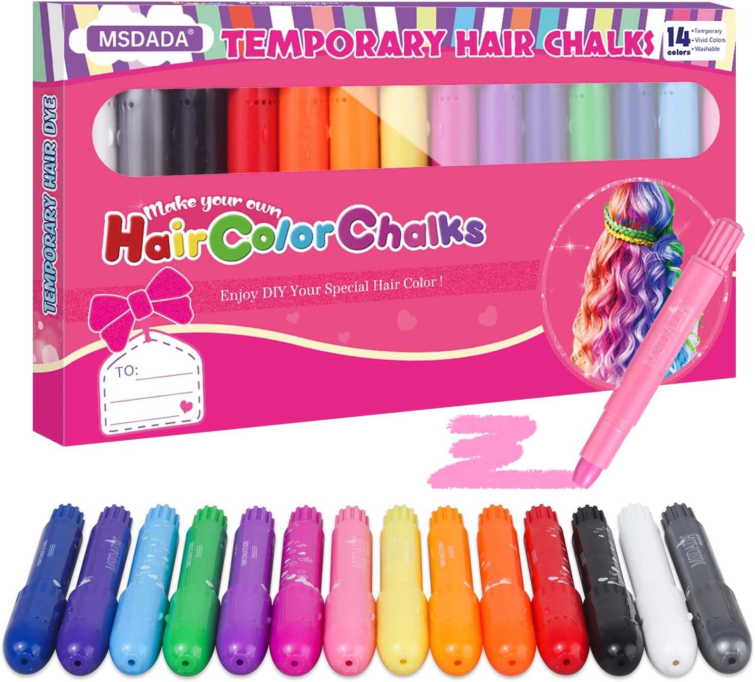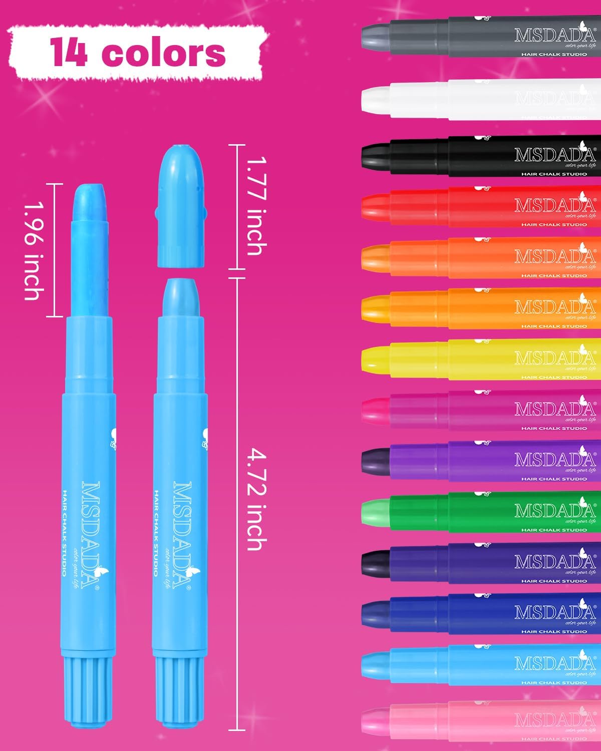 MSDADA 14 Colors Hair Chalk Pen Set for Girls Kids, Temporary Hair Color Pens, Washable Hair Chalk for Teens Kids Girls Birthday St. Patrick’s Day Children’s Day Gifts Party Cosplay Festival Hair DIY