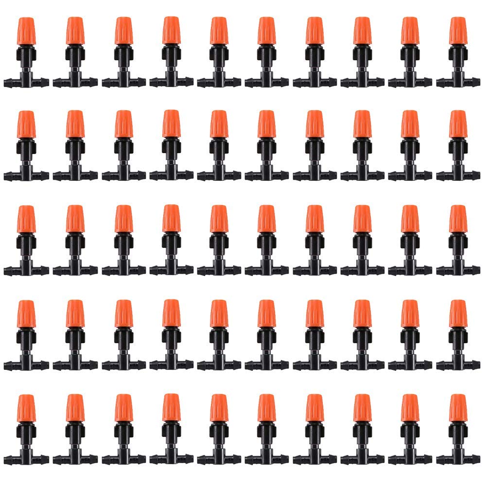 ☑️【Product included】- 50 pcs adjustable irrigation drippers with 50 pcs connect tees(Suitable for 1/4” hose, please confirm the hose size before order).