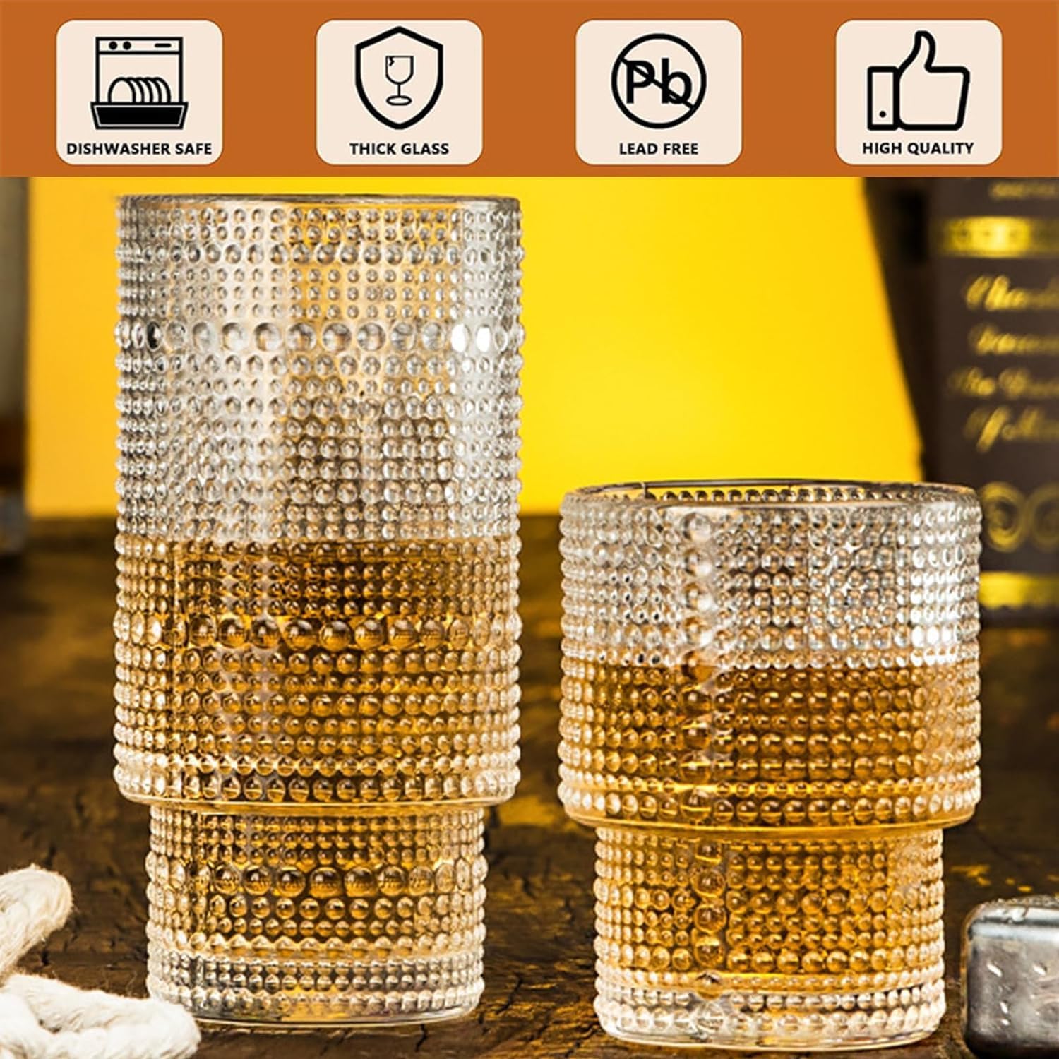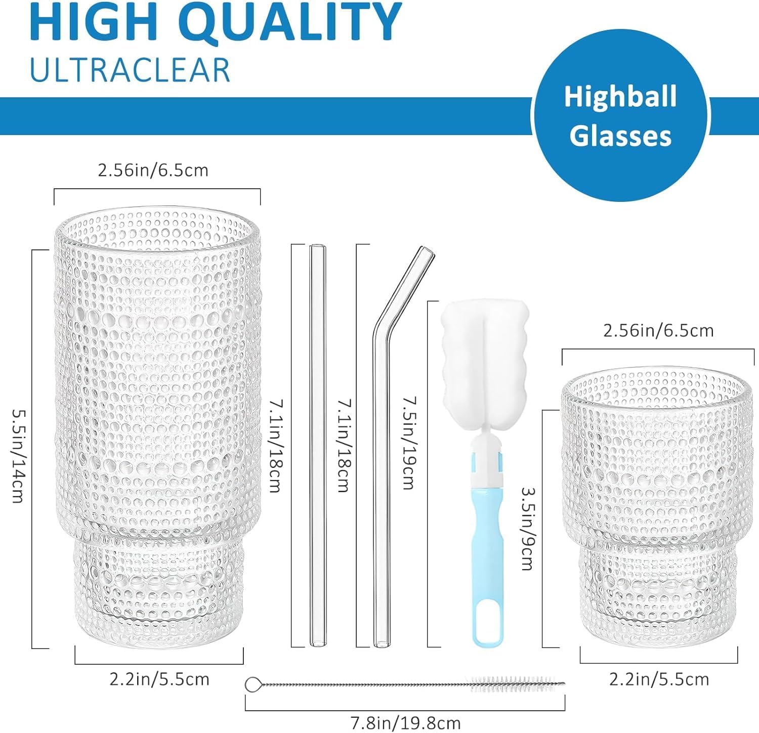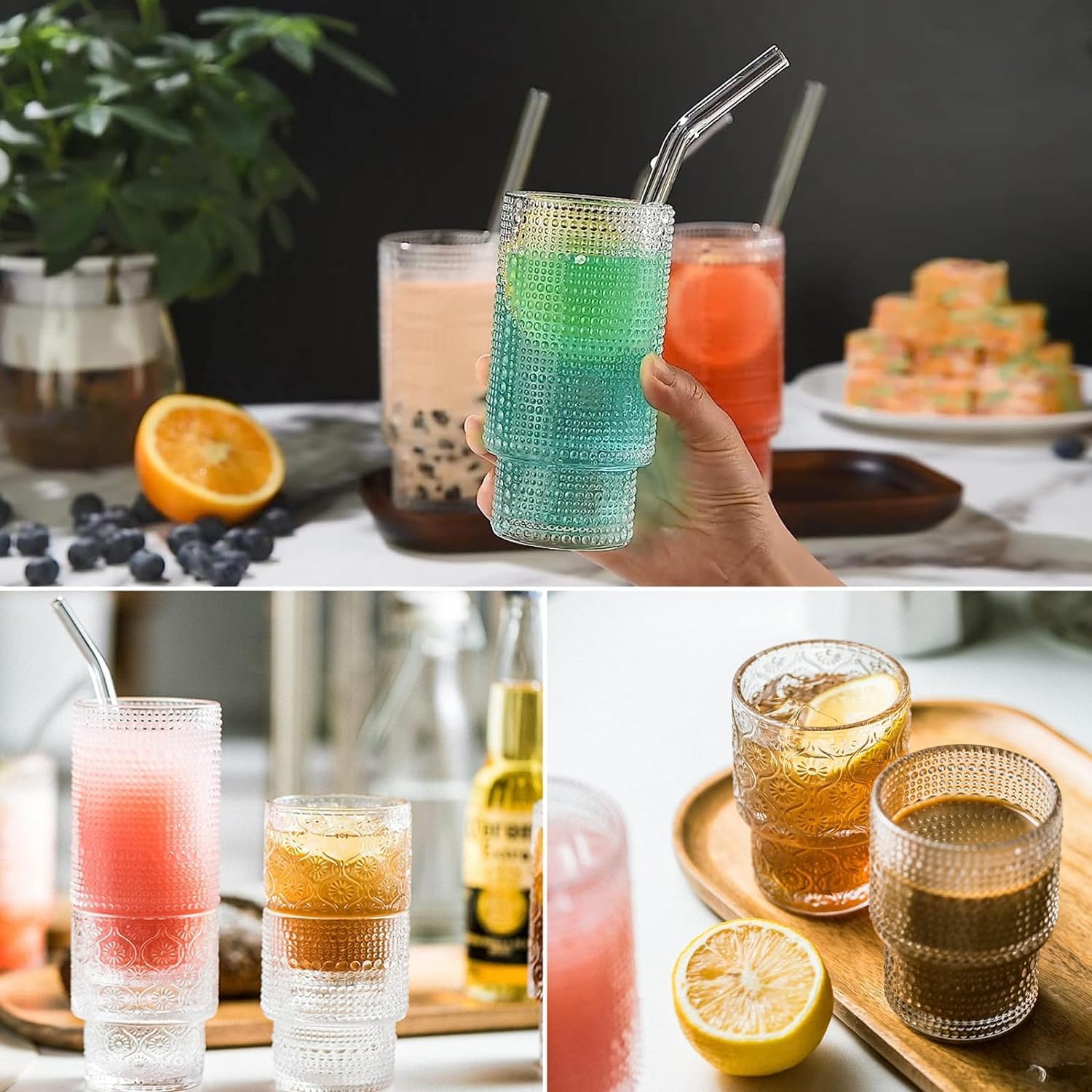 Get a Better Drinking Experience – MSYU 8 Pack Raindrops Highball Glasses Vintage Embossed Pattern with Glass Straws