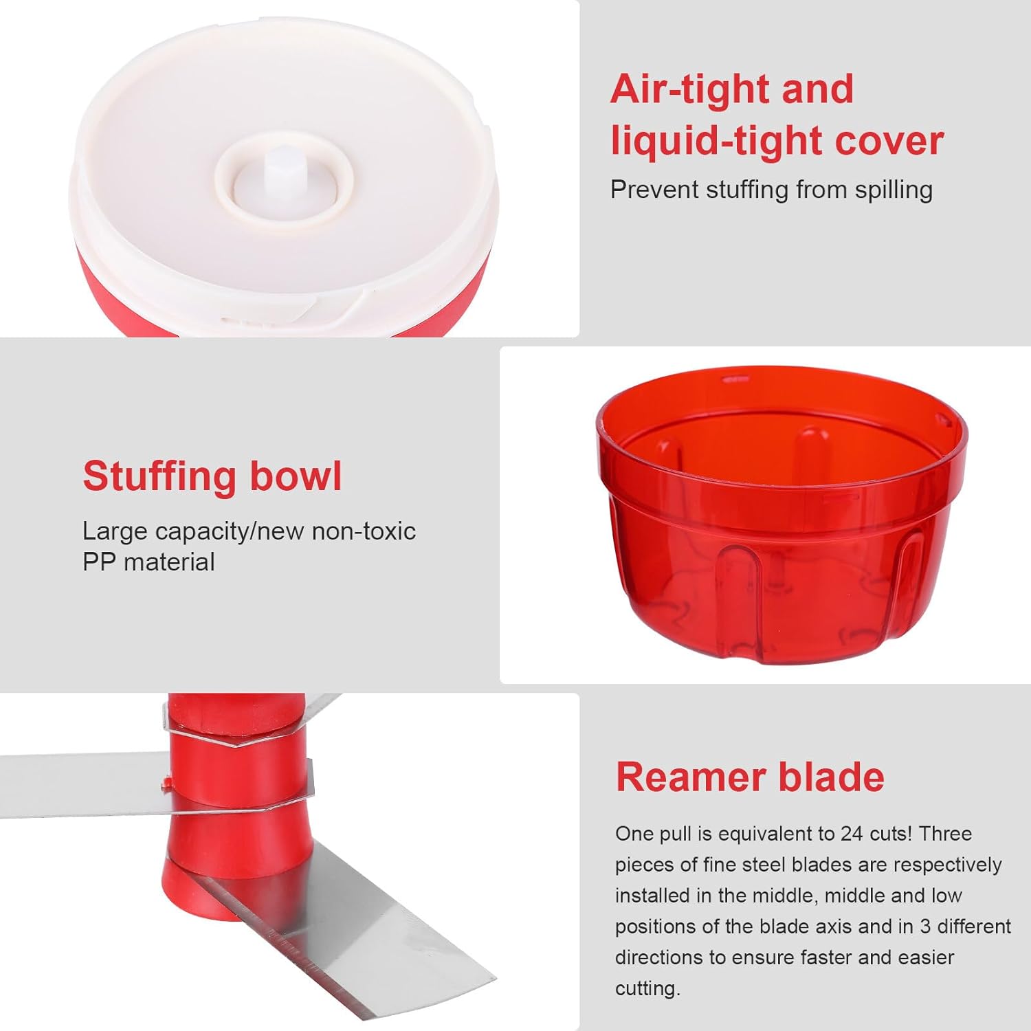 🥕【Precise Cutting, Consistent Results】: Each time the cord is pulled, the blade assembly rotates eight times around the central axis, providing precise and consistent cutting results. Whether you want to chop coarsely or finely, the number of pulls determines the texture of your ingredients, providing versatility in your food preparation.