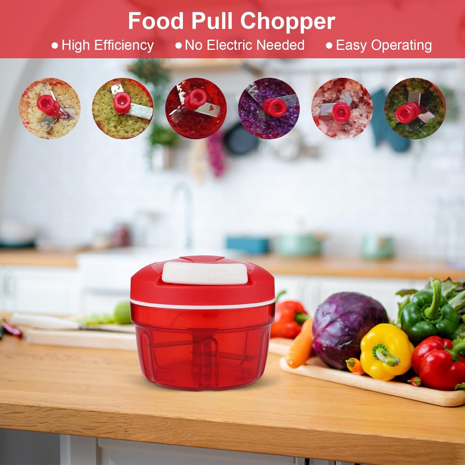 ✅ PRECISE CUTTING: Each time the cord is pulled, the blade assembly rotates eight times around the central axis, providing precise and consistent results. Whether you prefer your ingredients coarsely or finely chopped, the number of pulls determines the desired texture, providing versatility in your food preparation.