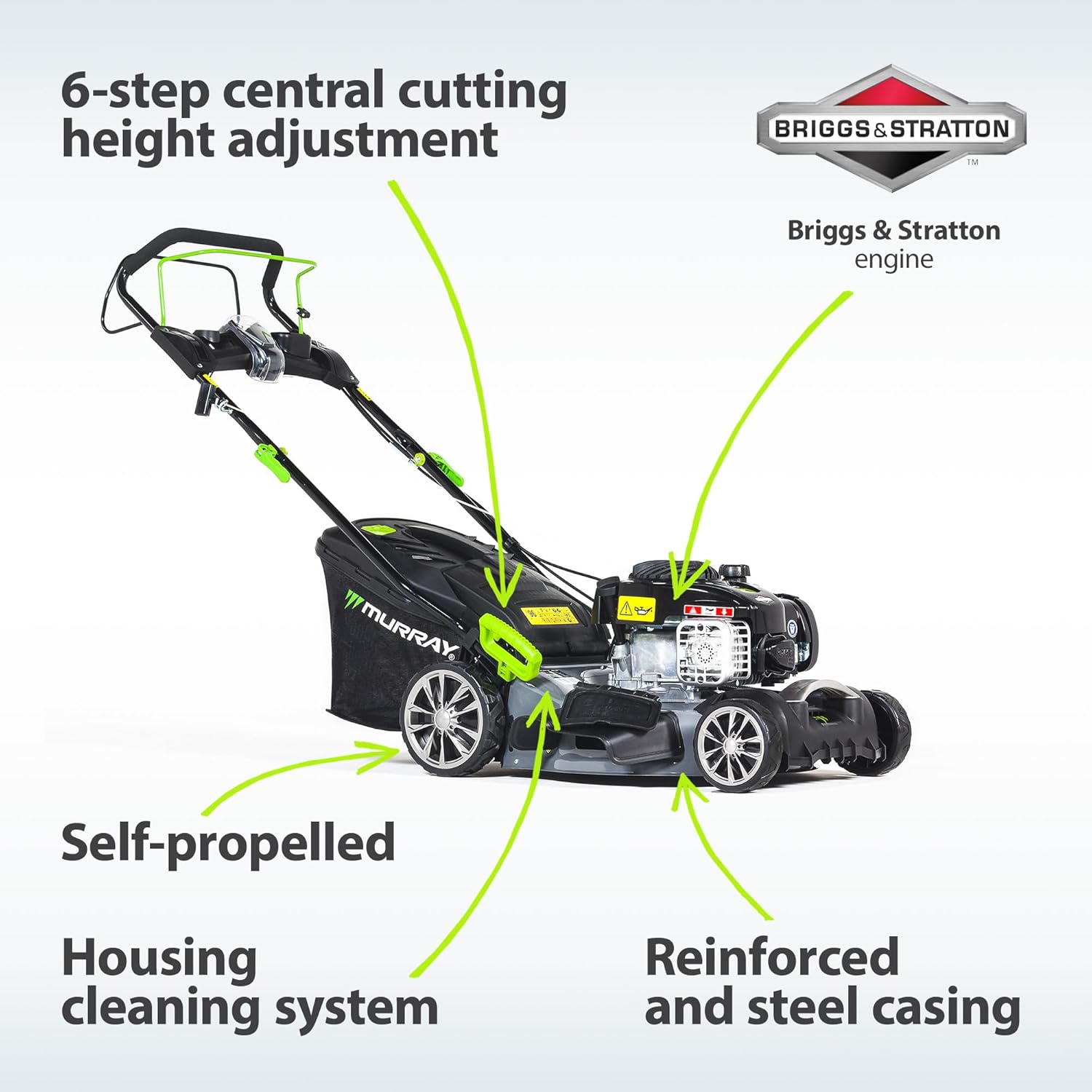 Murray Self-Propelled Petrol Lawnmower 4-in-1 – Petrol Lawn Mower “EQ2-500” 46cm with Grass Box 50L for Small and Medium Lawns, Easy to Start – Easy to Clean, Dust Shield