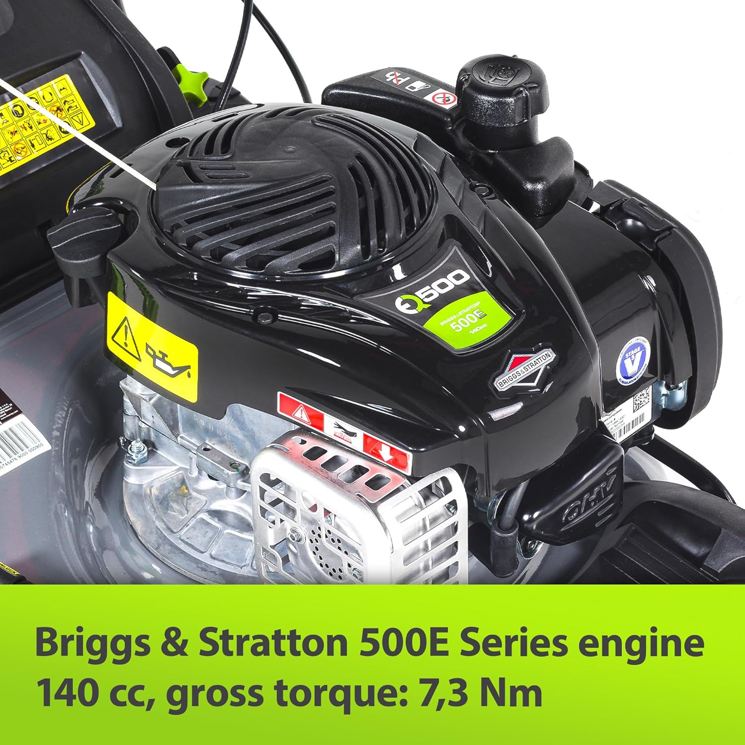 The Murray mower is equipped with a 140cc Briggs & Stratton 500E Series engine with a maximum torque of 7.3Nm.