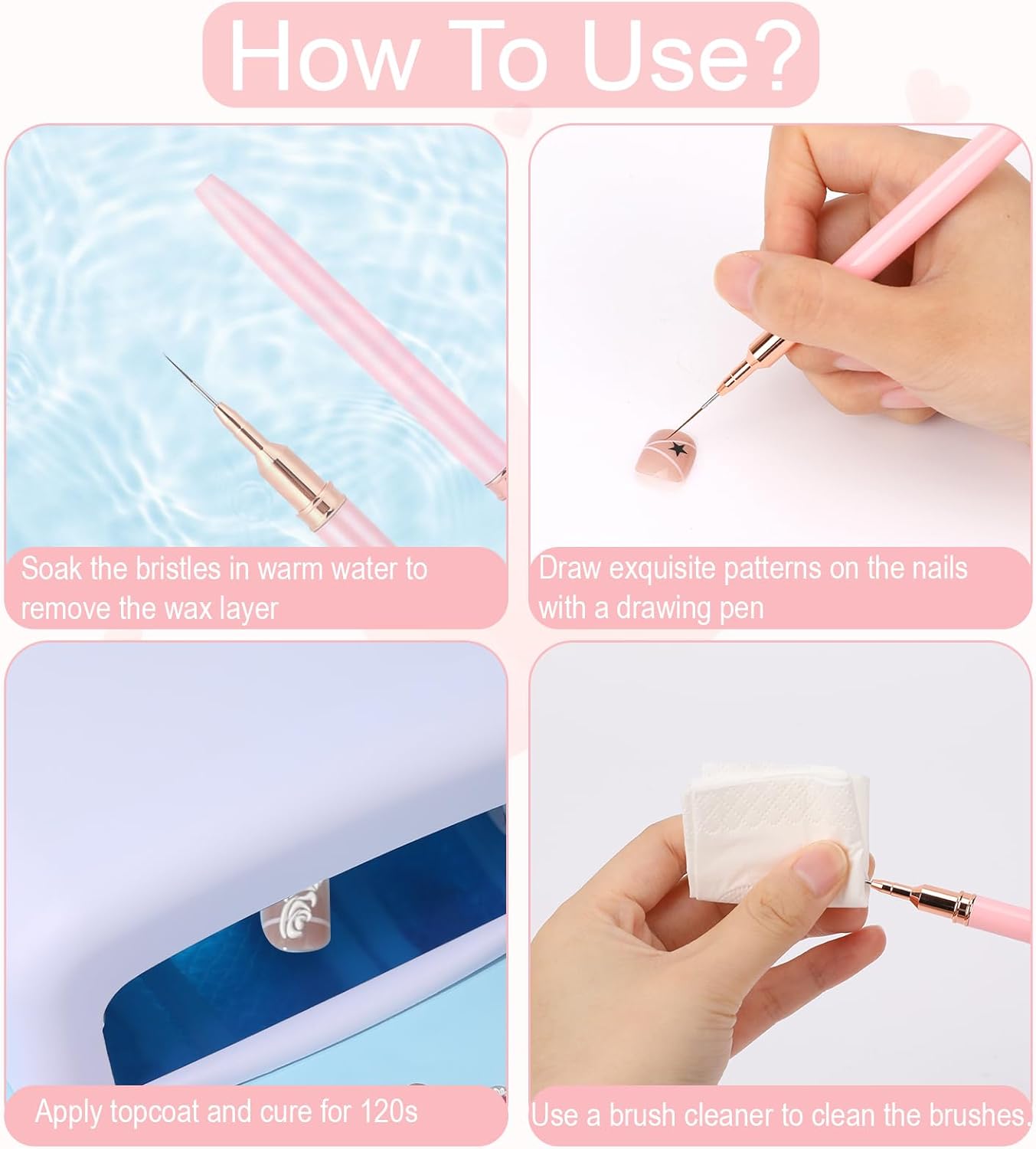 【Apply to】This nail design brush is perfect for making gel polish manicure, line drawing, flowers, checkered pattern, pattern, short strokes, fine painting and various pattern designs on nail tips, suitable for home use and professional nail salon.