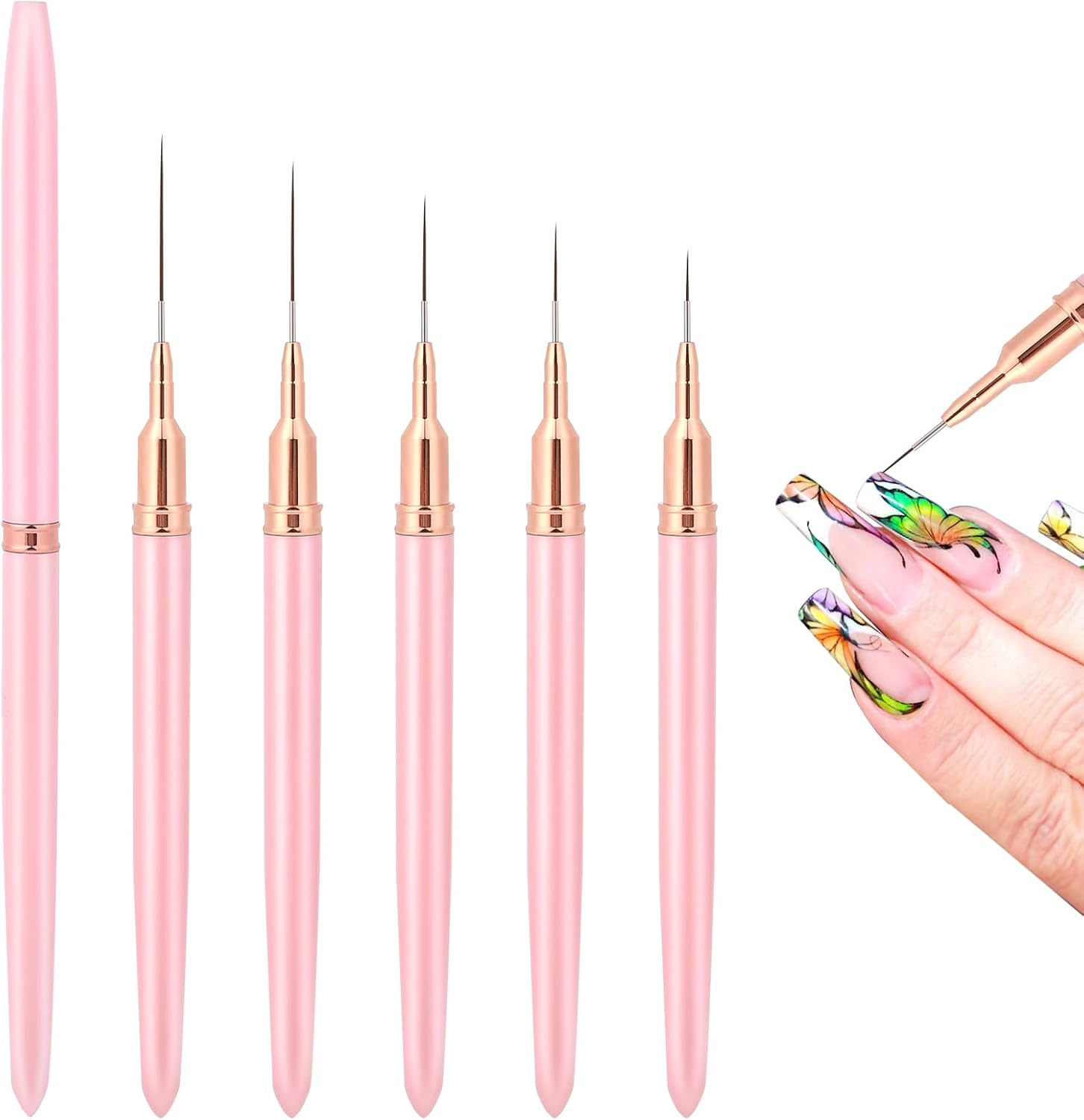Nail Art Liner Brushes, 5Pcs 4/8/12/20/25mm Painting Nail Art Brush Set Nail Dotting Drawing Tool Nail Art Design Brush Detail Brush for Long Lines, Thin Details, Fine Drawing