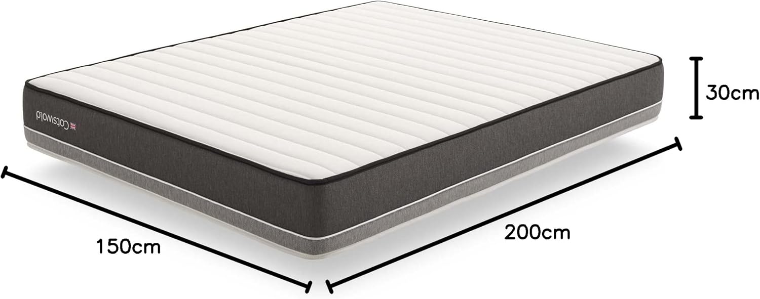 naturalex Cotswold Memory Foam Mattress 30cm high – 5ft King Size 150x200cm, Fire Resistant – Skin Friendly – Lumbar Support – Ergonomic Support – Sanitised Hypoallergenic