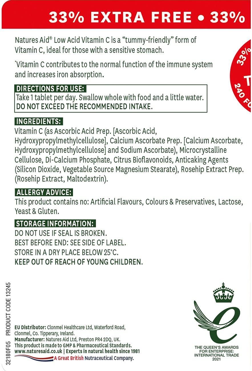 Natures Aid Low Acid Vitamin C 1000mg with Rosehips & Bioflavonoids 240 Tablets