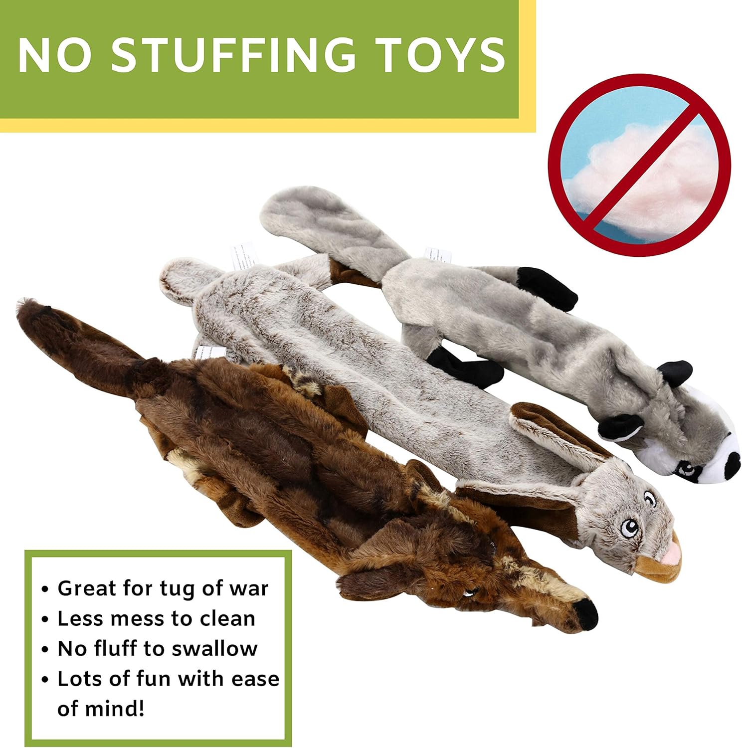 NO STUFFING OPTIONS: Great for tug of war and great for ease of mind because your pet will not swallow any fluff. These no stuffing toys come in a variety of animal shapes with an internal squeaky to give your dog all the fun without the mess. Durable, safe and ideal for a happy puppy