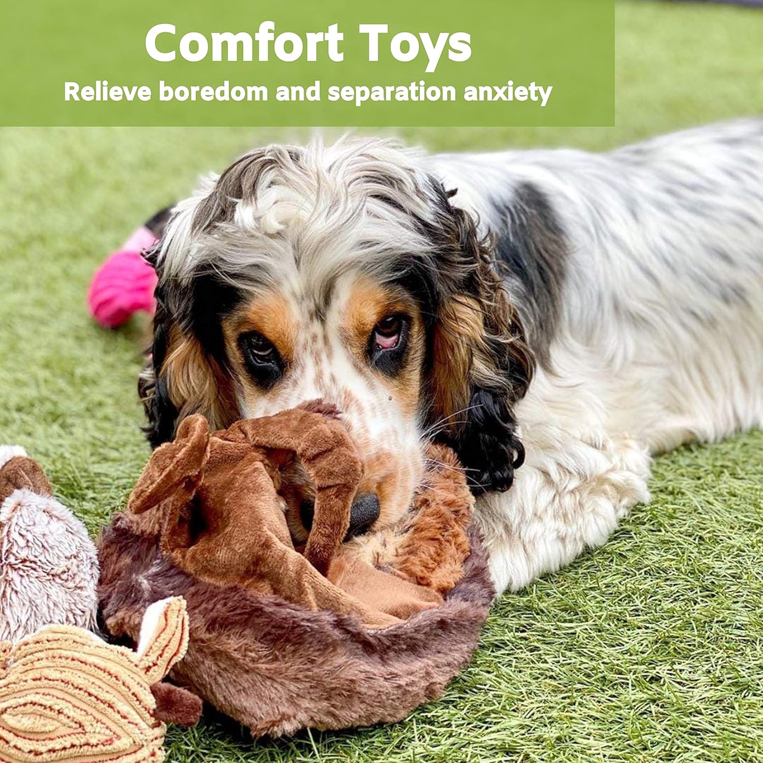 Nature’s Buddy Plush Dog Toys – Squeaky, cuddly soft chew bundle – 5 pack set – durable, interactive toys for puppy and small dogs – variety with 3 no stuffing animals