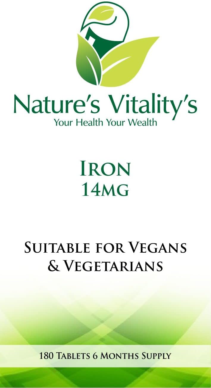 Nature’s Vitality’s Iron Tablets 14mg 180 Tablets 6 Months Supply Suitable for Vegans & Vegetarians Gentle Iron Support Contributes to Normal Immune System and Reduction in Tiredness and Fatigue