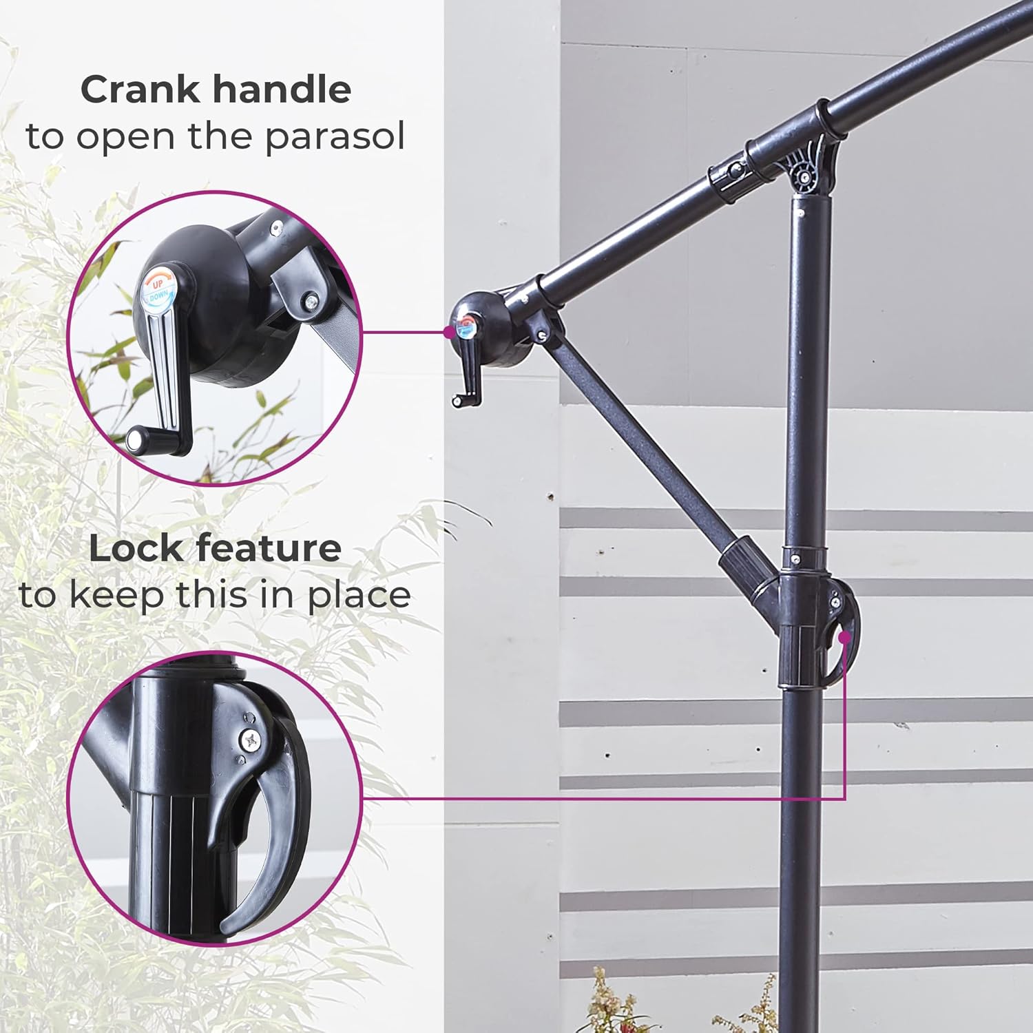 Neo 3M Garden Banana Outdoor Waterproof Freestanding Parasol LED Lights Hanging Cantilever Umbrella Sun Shade with Crank Handle Water Base