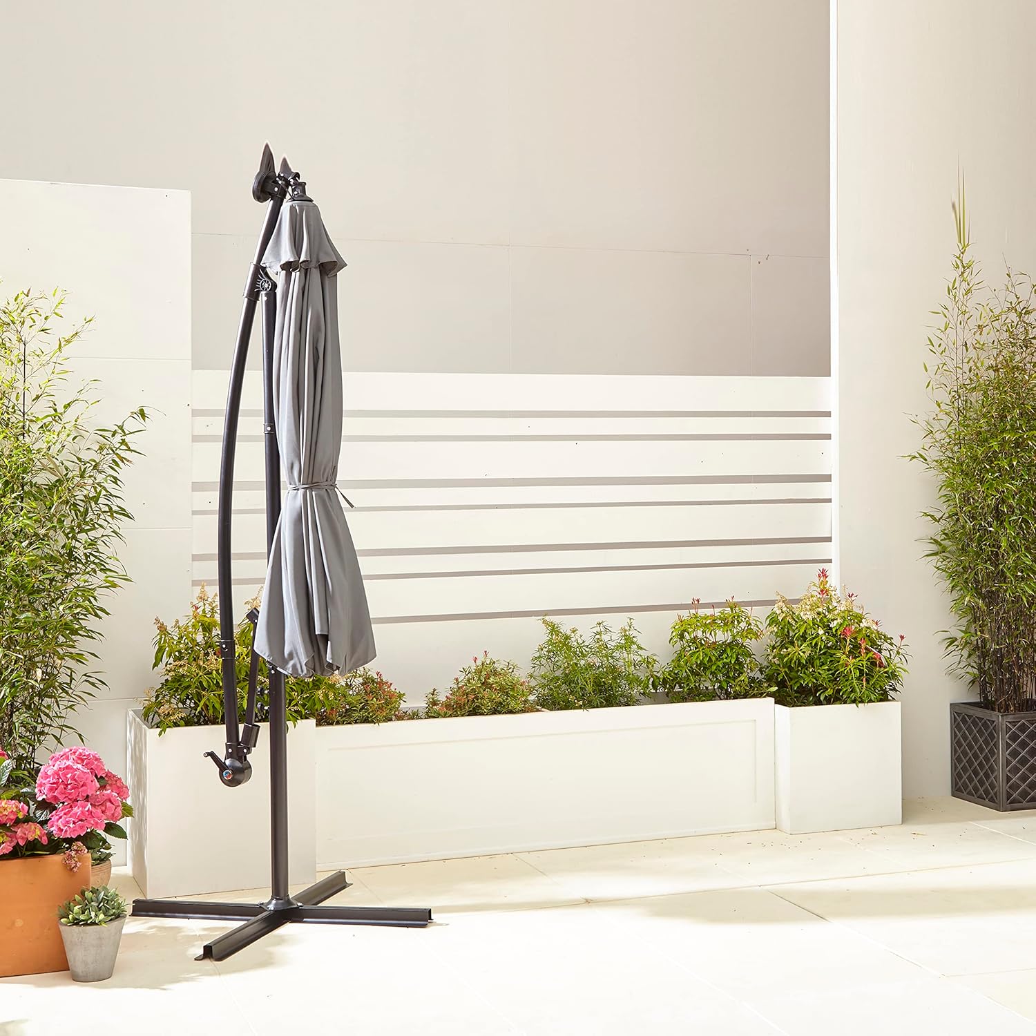 Keep yourself shaded from the sun with this Neo cantilever 3m parasol. The solar umbrella makes your patio and backyard more comfortable and inviting even when night falls.This parasol can be used as a free-standing parasol with a water base to keep the parasol in place for added stability. This product features an easy to operate crank which will help you to adjust the canopy position when required. This can also be easily folded down and stored away when not in use. It is recommended that the parasol remains closed when not in use and is always kept closed in extremely windy conditions. The heat and hot air accumulated under the canopy can escape through the vent as the cooler air comes in, so that you feel much more comfortable. This also comes with a weatherproof cover. Once the parasol is folded down the cover can be put over the piece, protecting it from the elements when not in use. This Neo parasol adds style to any outdoor space while creating ambience as night falls with the LED feature.
