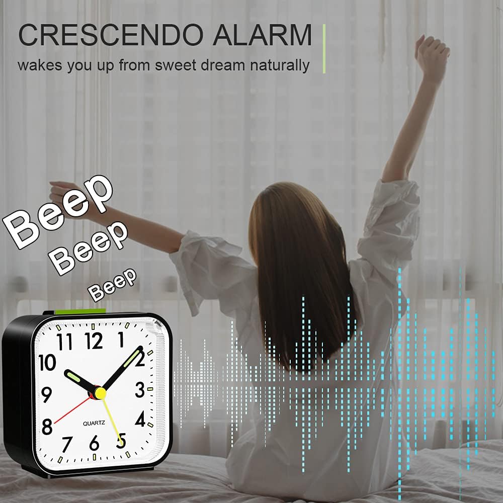 Neucox Battery Alarm Clock Bedside Non Ticking Silent Desk Clock Simple Table Analogue Clocks Nightlight Luminous Hands for Bedrooms Office Outdoors Heavy Sleepers