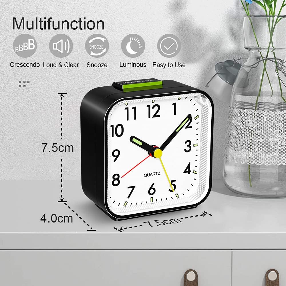 ◎ SNOOZE ALARM CLOCK. Snooze button locates on easy-to-find top place. Enjoy the extra 5 minutes snooze times. With small design and battery operated, the travel alarm clock is portable. Ideal for office, bedside, travel, outdoor and reading.