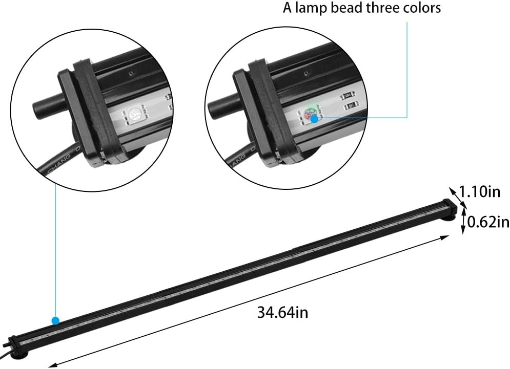 【COLORFUL VISUAL EFFECT 】24 keys controller can provide 16 solid colors and 4 various light modes (smooth/flash/strobe/fade). Ultra bright and full spectrum RGB fish tank lights for showing vivid colors of aquatic plants and fish can be used to provide stunning lighting effects in the day or night.