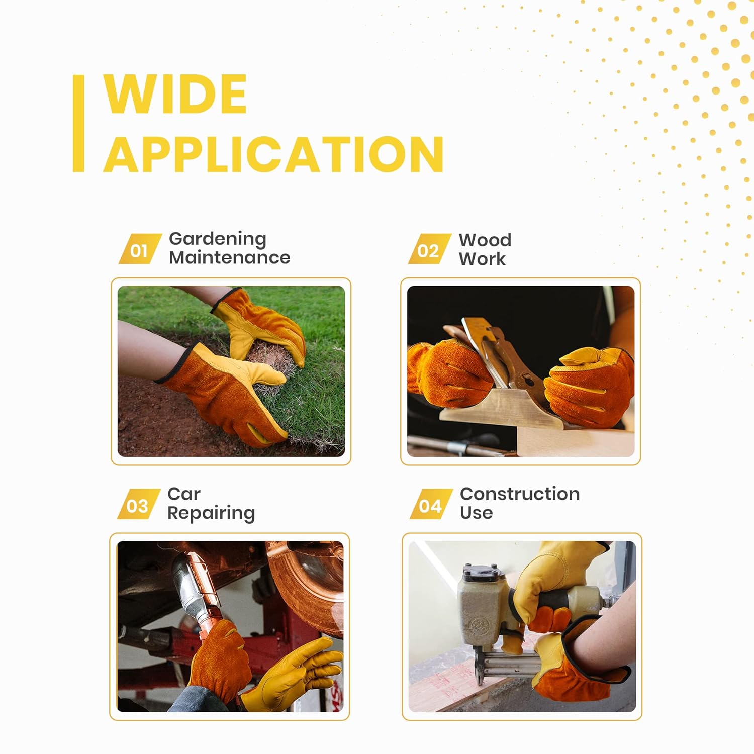 PREMIUM QUALITY MATERIAL: These Thorn Proof Gardening Gloves are composed of high-quality grain Cowhide leather that is lightweight and breathable. These work gloves with excellent stitching and durable, thorn-resistant cow split & cowhide leather are meant to keep your hands cool & dry with higher abrasion resistance and puncture resistance.