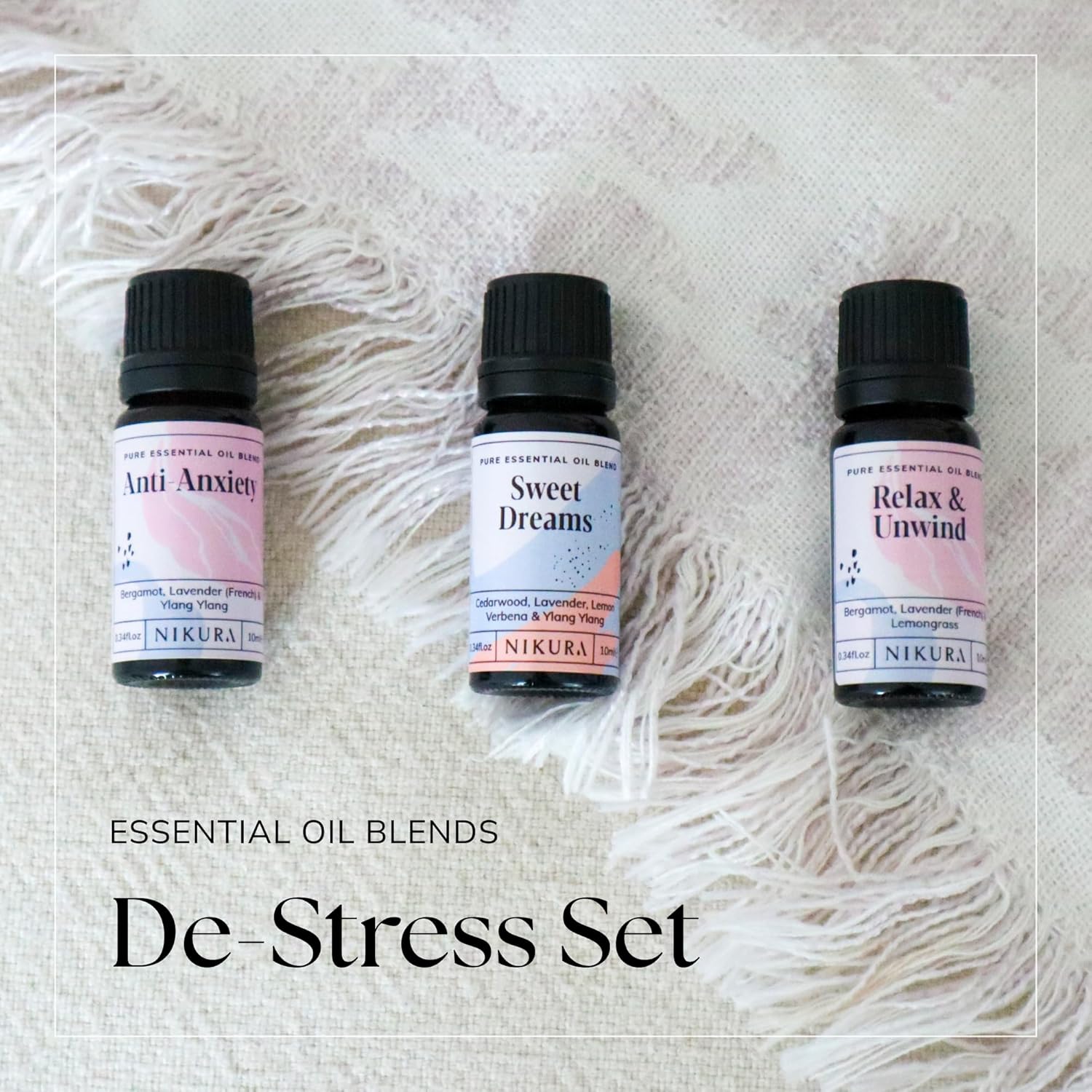 Nikura | De-Stress Essential Oil Blends Set – Floral Relief & Sweet Dreams | for Aromatherapy, Soap and Candle Making, Sleep, Diffusers for Home, Vegan, 100% Pure and Natural