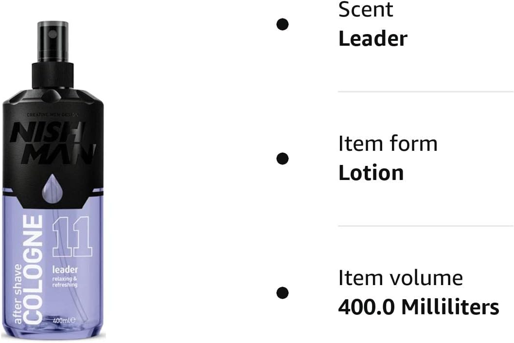 Nish Man After Shave Cologne Leader 11 – Nishman Relaxing Refreshing Aftershaving Spray Lotion Kolonya for Men–Contains lavender, bergamot, lemon, Indian basil, amber etc. fragrances 400ml (Leader)