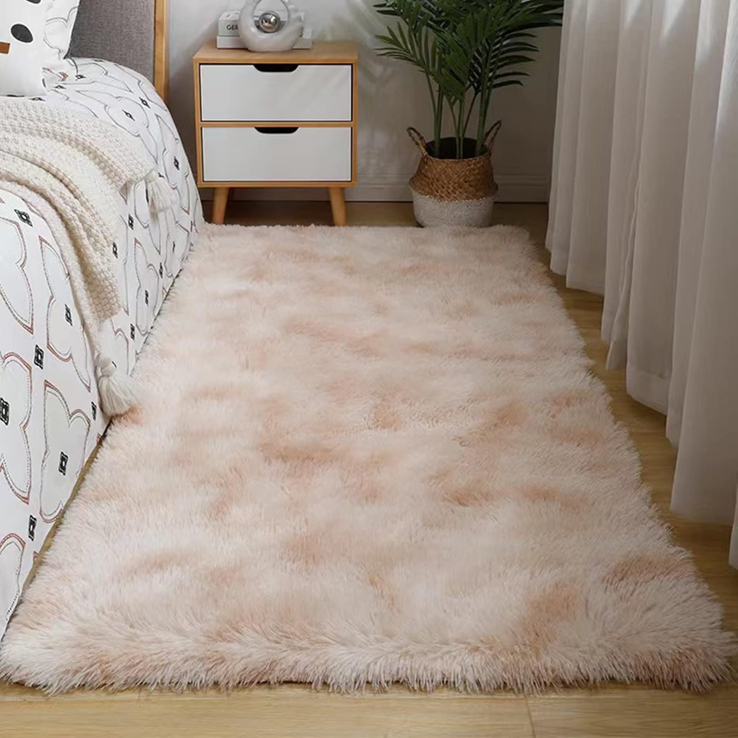 Anti-slip Bottom Design – The bottom of our fluffy carpet is equipped with thousands of tiny and durable rubber grip dots that help hold in place on wooden or other materials floor, and hold up even with kids and pets. Please note you need to keep the underside of the area carpet dry, as the water under the area rug can cause slip.
