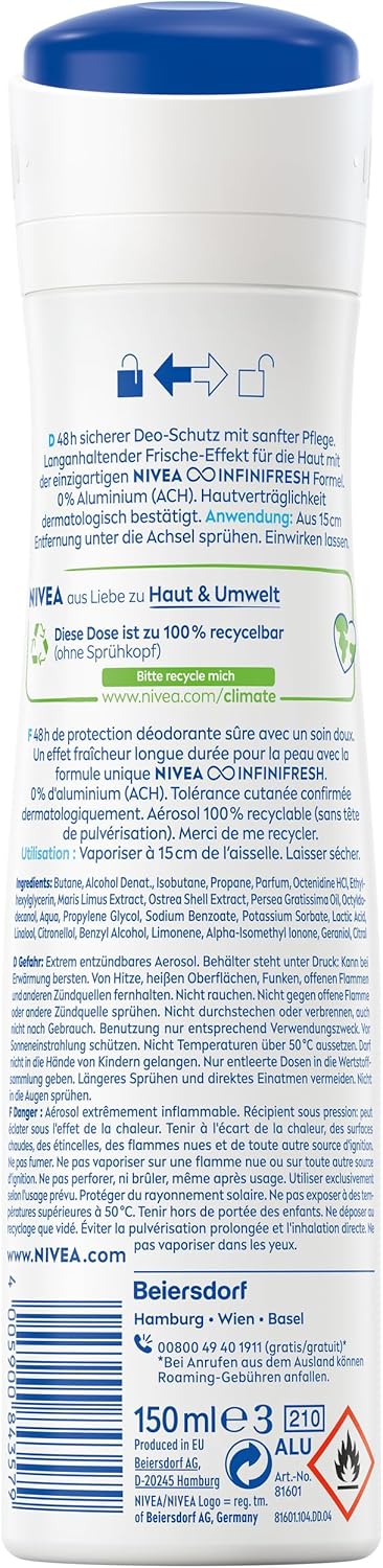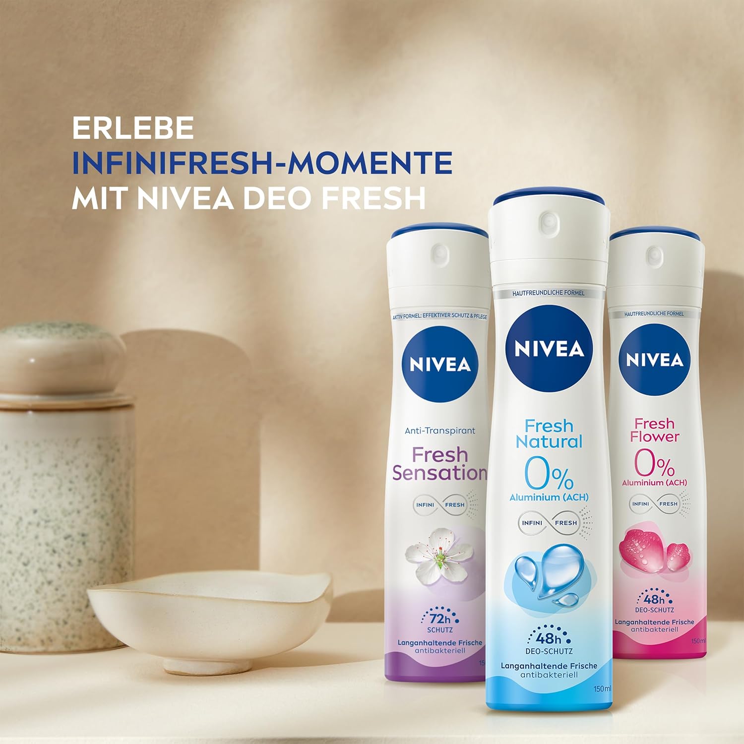 NIVEA Fresh Natural Deodorant Spray (150 ml), Deodorant without Aluminium (ACH) with 48-Hour Protection and Gentle Care, Deodorant with Unique Infinifresh Formula for Long-Lasting Freshness