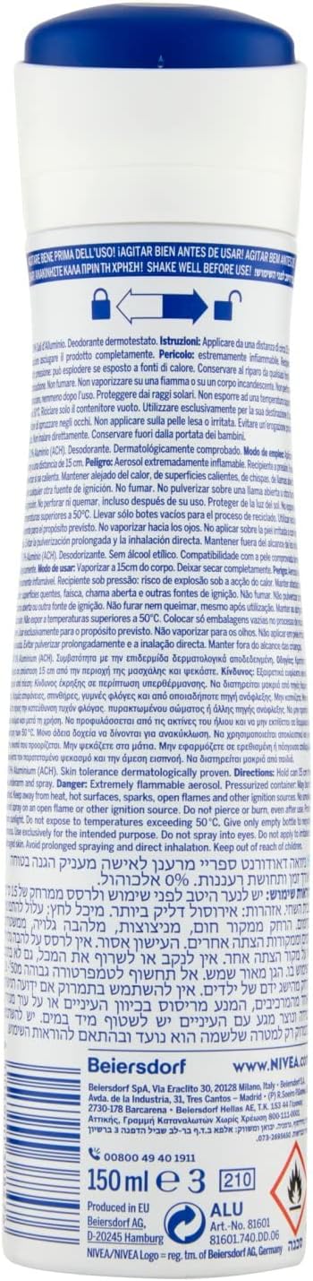 Package contents — NIVEA Fresh Natural Spray deodorante delicato, deodorante NIVEA without aluminum salts with ocean extracts, pack of 1 x 150 ml, article number 816010