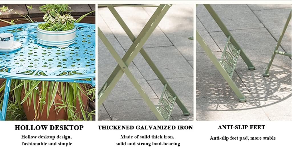This item includes 1 table, 2 round chairs and 1 bench. Design of rose pattern in cast aluminum process High temperature spray painting is more environmentally friendly without smell, and it will not rust in the sun and rain outdoors, making it more durable High strength welding process, natural and beautiful joints Simple folding, stowed in the corner, does not occupy space Anti-slip feet pad, more stable Hollow desktop design, fashionable and simple Made of solid thick iron, solid and strong load-bearing Name: Bistro Conversation Set Material: Metal Applicable age group: adults Occasion: living room, bedroom, outdoor, dining room Tables Size: 70x70x75cm/27.5×27.5×29.5inch Chair Size:40x40x77cm/15.7×15.7×30.3inch 1 x Tables 2 x Chair Note: 1. Manual measurement has been used, there may be some reasonable error. 2. Due to factors such as display equipment and shooting environment, the color of the item may be slightly different from the picture, which is a normal phenomenon, please refer to the actual item.