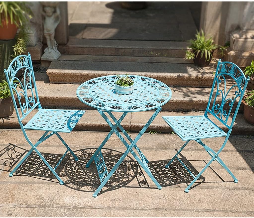 NOALED 3 PCS Aluminum Bistro Table Set Outdoor Metal Table, Weather-Resistant Garden Table and Chairs Wrought Iron Patio Furniture for Balcony Back