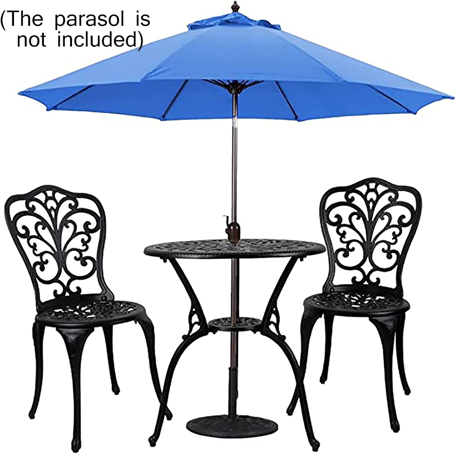Fit an Umbrella: The umbrella hole of the bistro table can fit a patio umbrella (not included) for enjoying outdoor leisure time with your family or friends and protect you from the ultraviolet ray or rain.