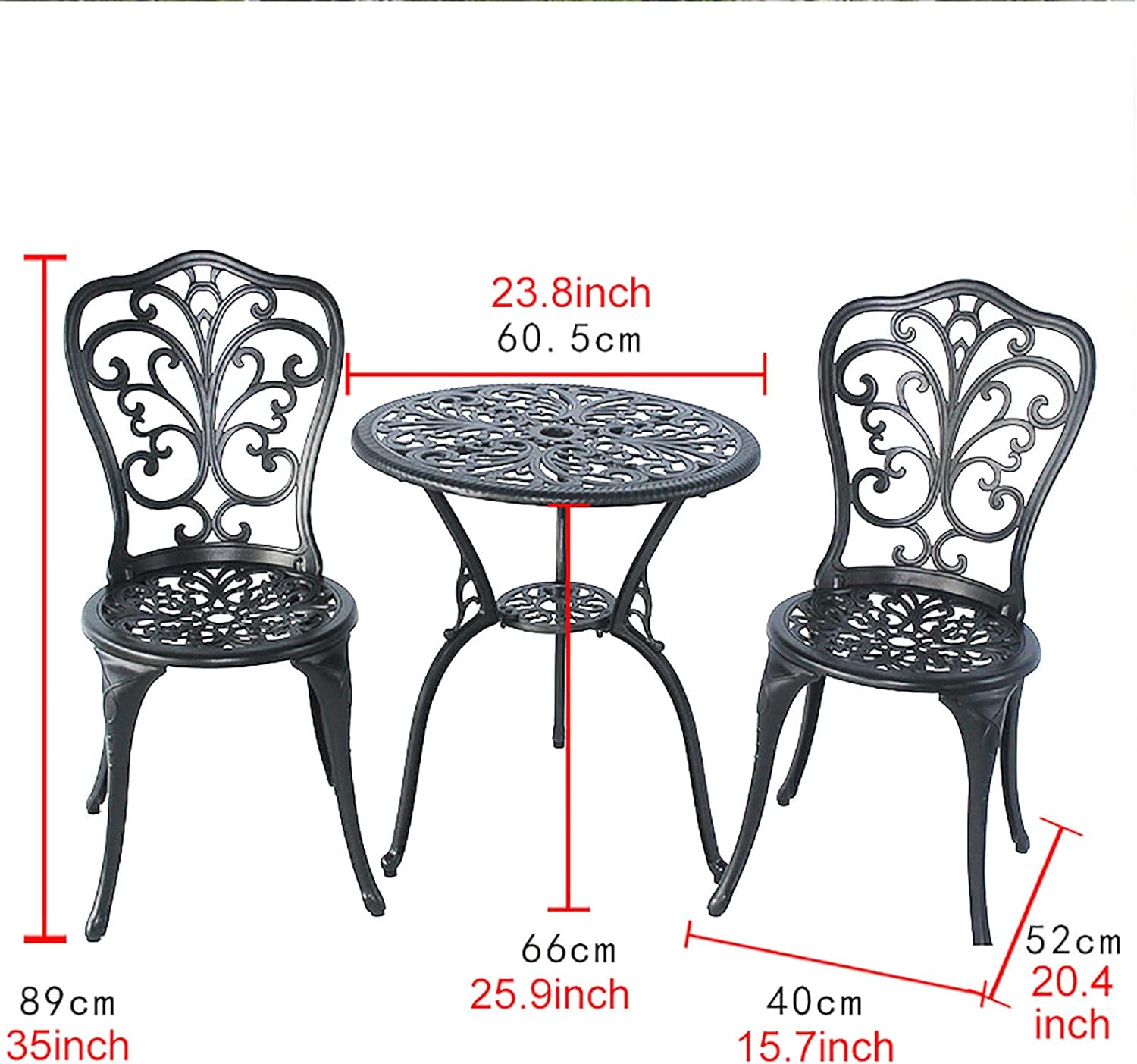 All-weather Cast Aluminum Frame: This bistro table set with environment friendly coating, weather Proof, rust resistance, oxidation prevention, makes it perfect for outdoor use all year round.