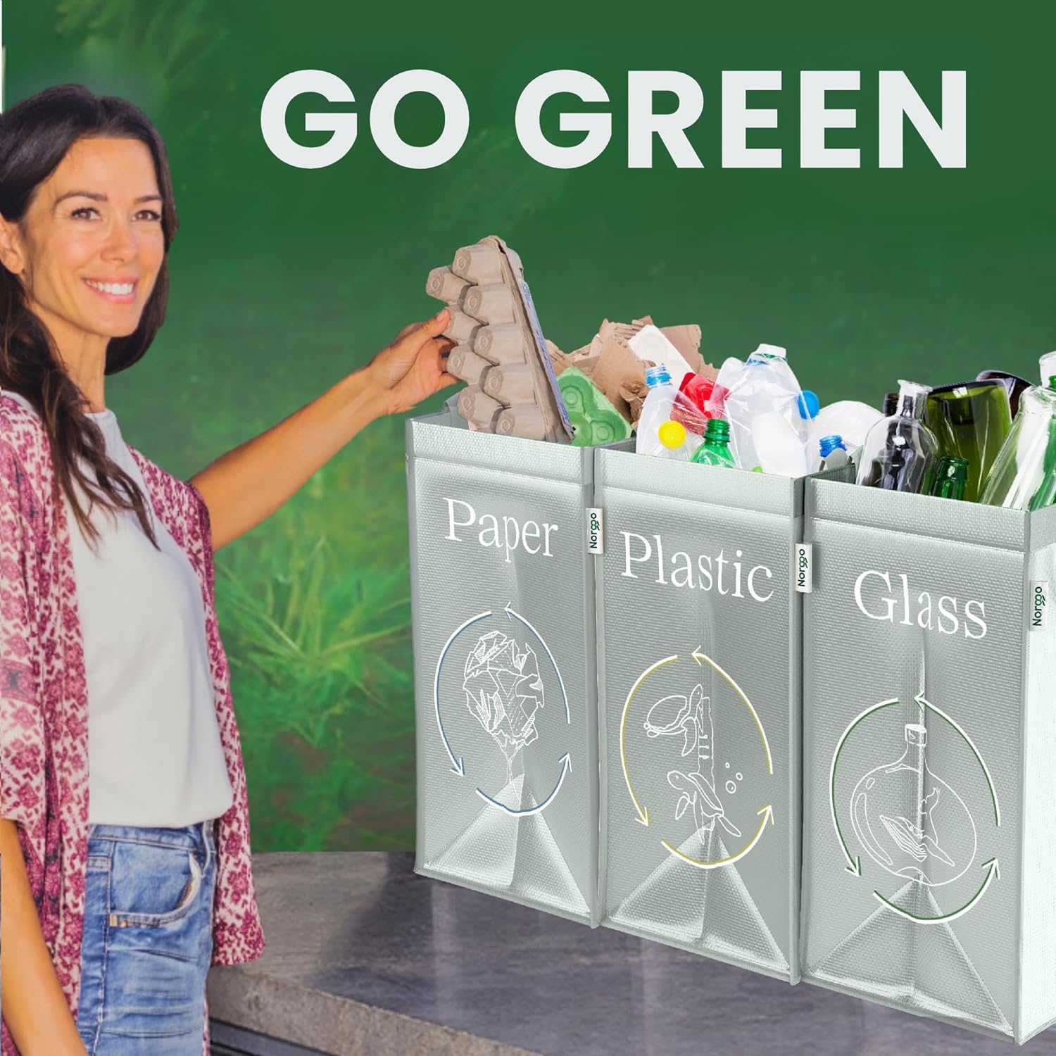 Norggo Reusable Recycling Bags for Kitchen – Large 40L Recycle Bin Bags Set of 3, Recycle Bags, Ideal for Home and Office