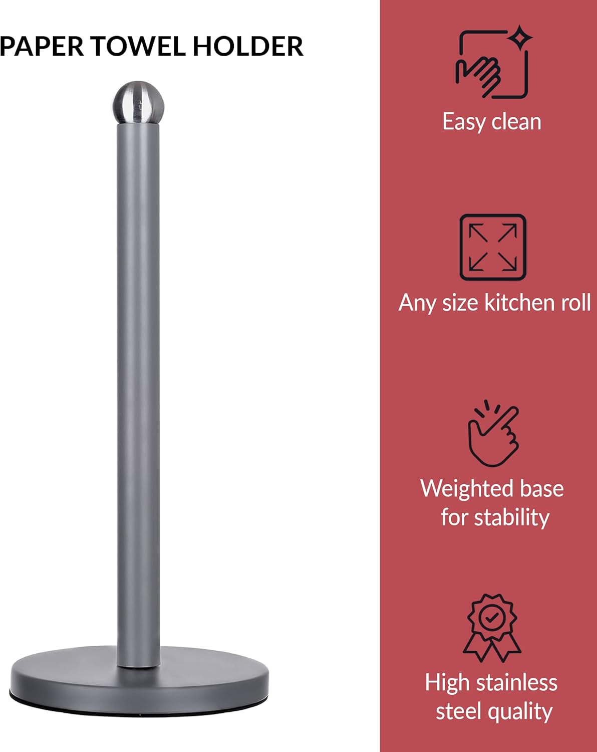 Novel Solutions Stainless Steel Matt Grey Coated Kitchen Towel Roll Pole Holder Kitchen Paper Stand
