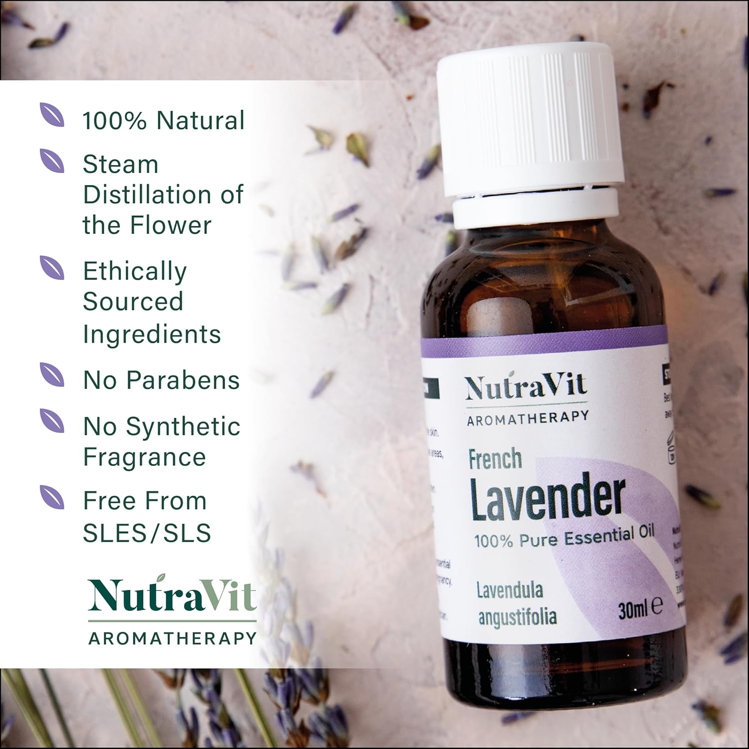 NutraVit – French Lavender Oil | 100% Pure Lavender Essential Oil – 30ml – Therapeutic Grade Aromatherapy Oil – Diffusers, Humidifiers, Massages, Sleep Aid & Anxiety