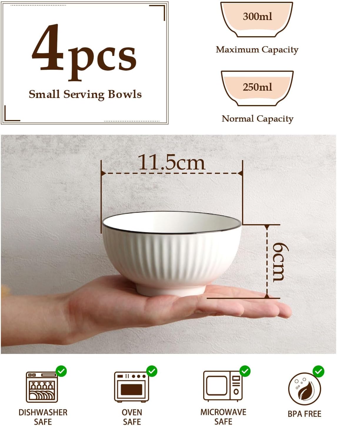 NUTRIUPS 300ml Soup Bowls Ceramic Cereal Bowls 11.5cm Small Bowls, White Serving Bowls Dessert Bowls (Set of 4)