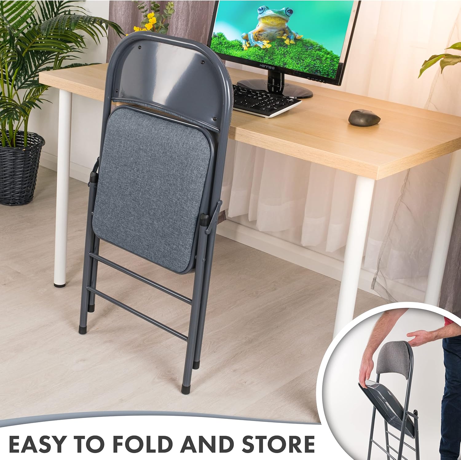 Nyxi Set of 4 Folding Chairs with Padded Fabric Seats, Metal Frame, Foldable Chair Home Office Dinning, Multi-Purpose Indoor & Outdoor (Dark Grey)