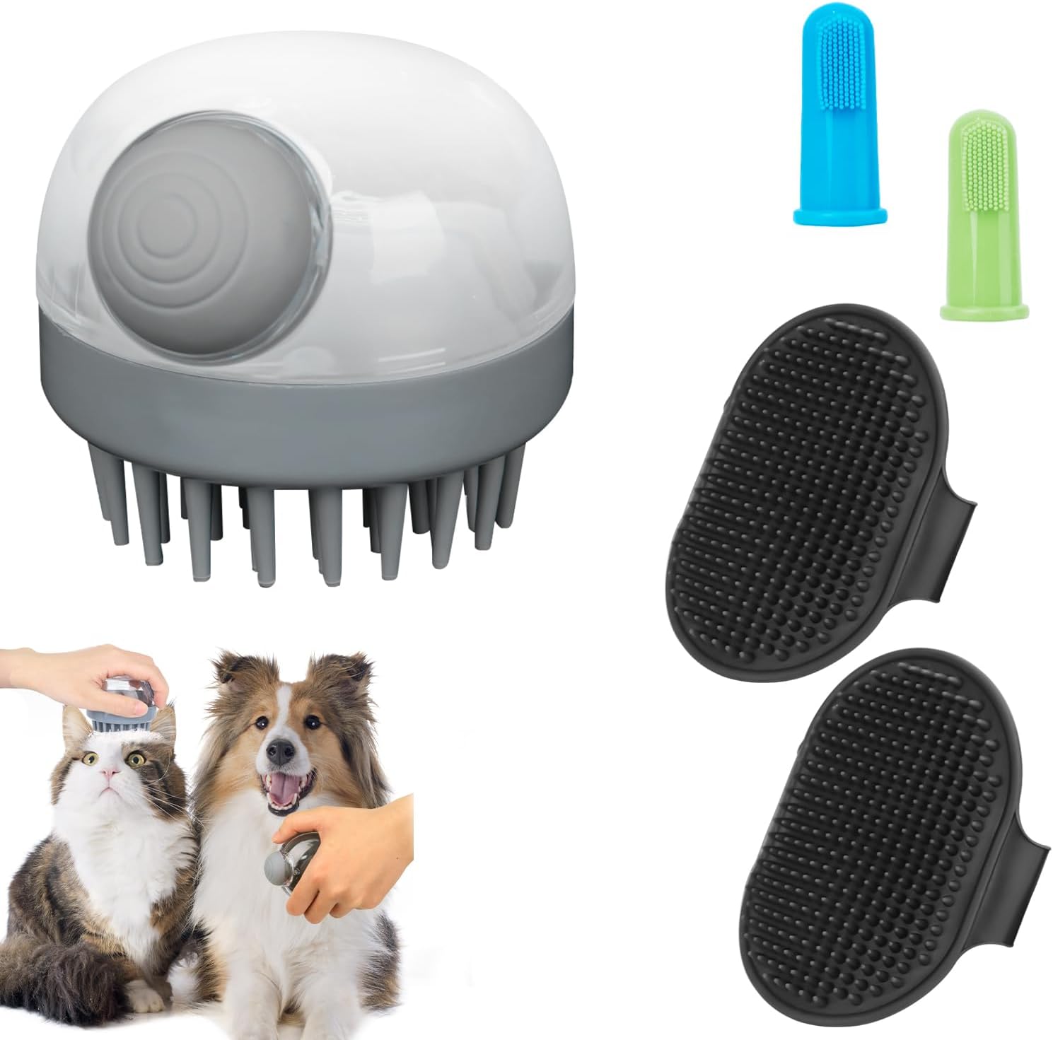 OIFIKAA for Pet Bath Brush Set,With 1* Shampoo Brush + 2* Adjustable Bath Brushes + 2* Pet Toothbrushes for Long & Short Hair Small and Large Pet Dogs& Cats Shower Scrubbing&Soothing Massage