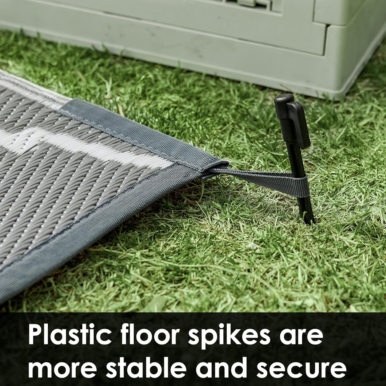 PORTABILITY: Outdoor rug comes with four professional fixing pegs and a carry bag so you can secure the plastic patio rug in place and reinforce the edges without being disturbed by windblown garden mats, reducing slip and fall accidents. It can also be easily transported and stored when not in use.