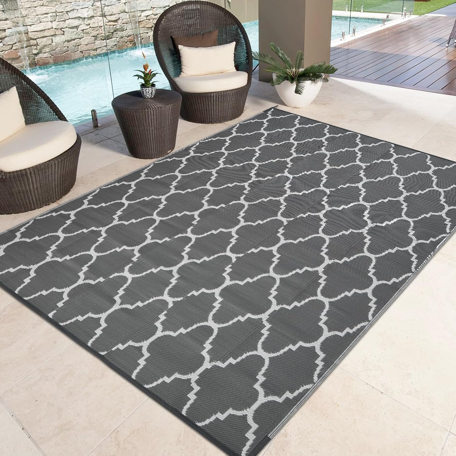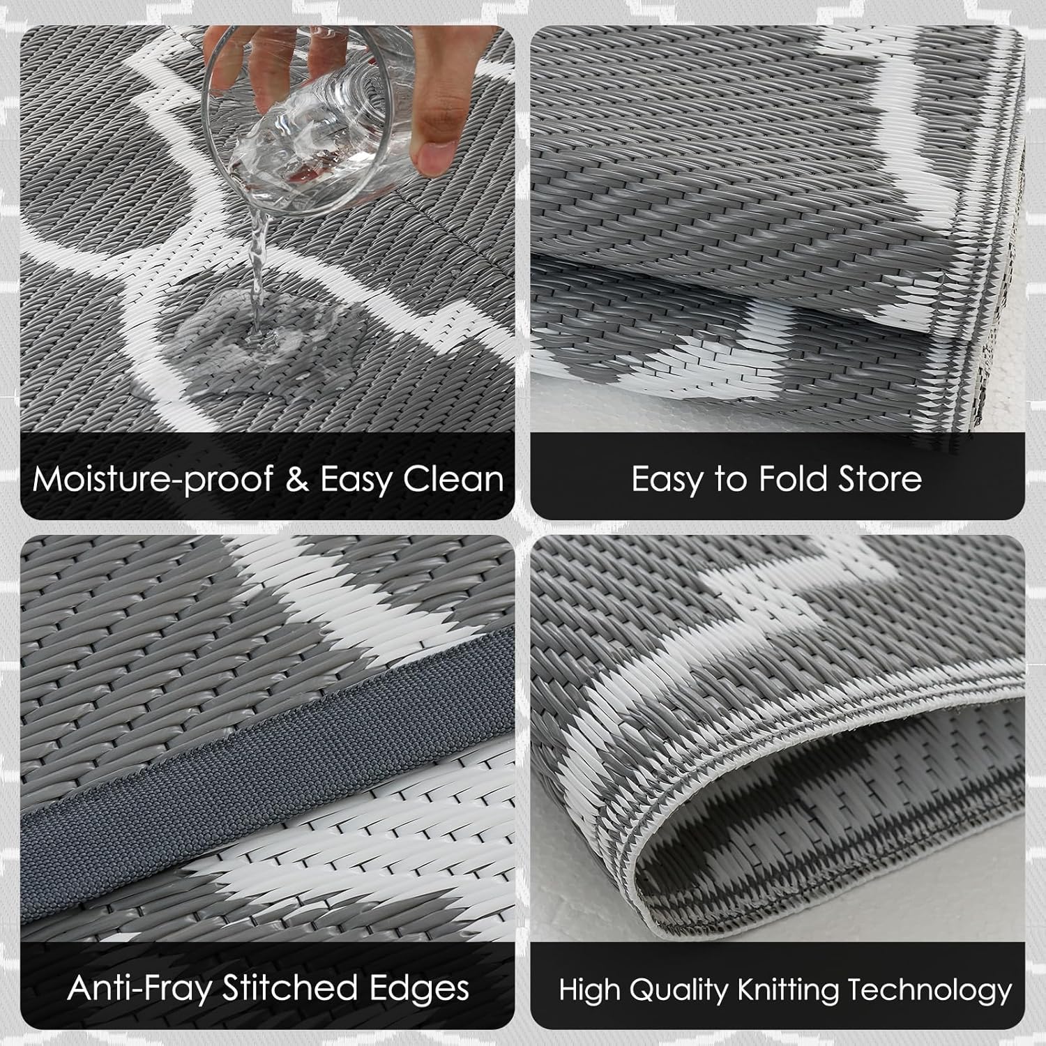 OIGAE Outdoor Rug – Reversible Plastic Grey Rug 120X180CM Weather & UV Resistant Rugs for Garden,Patios, Camping, Beach & Picnics Lightweight Waterproof Carpet Foldable Mat