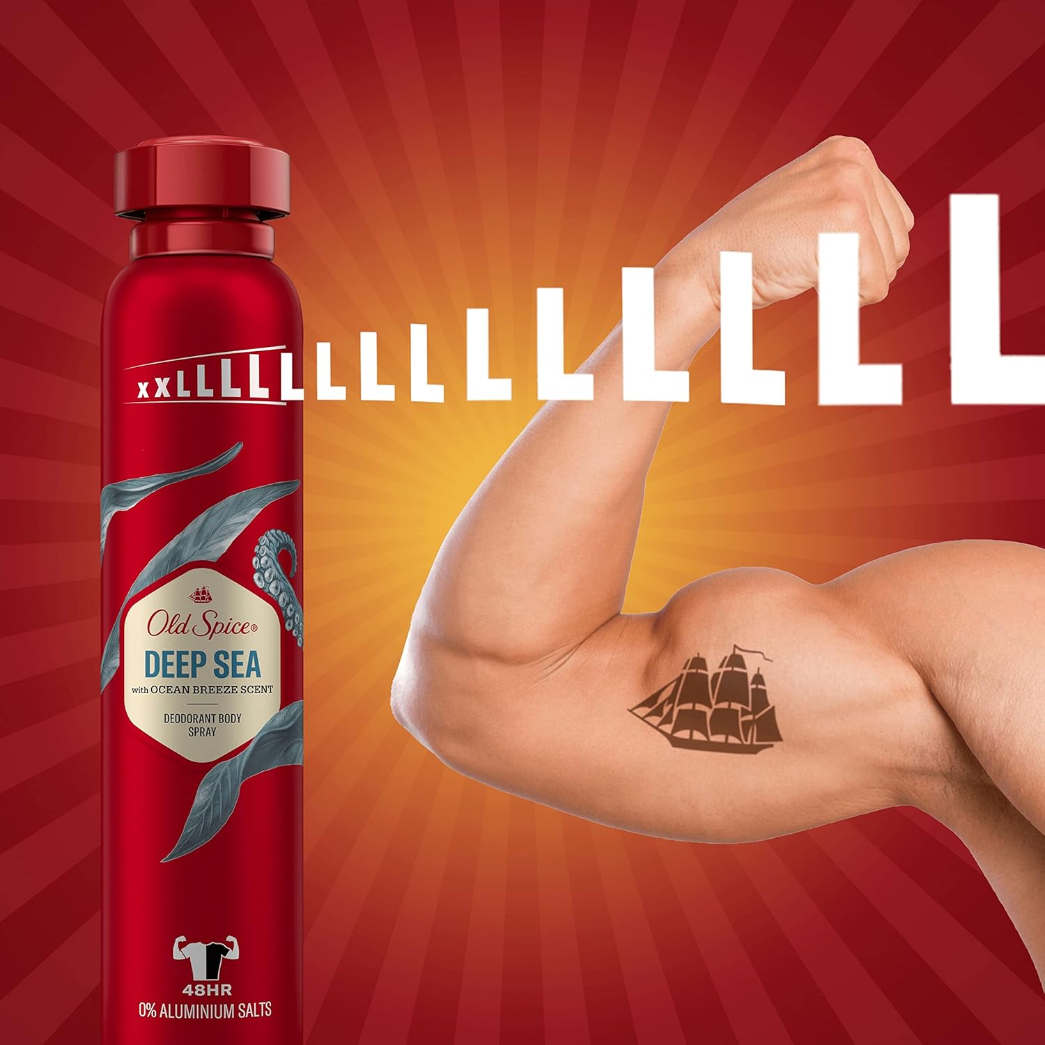 Old Spice Deep Sea Deodorant Body Spray For Men 250 ml, 48H Fresh, 0% Aluminium Salts, Anti-White Marks and Yellow Stains