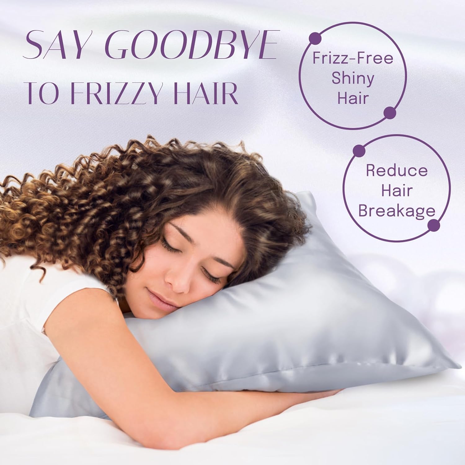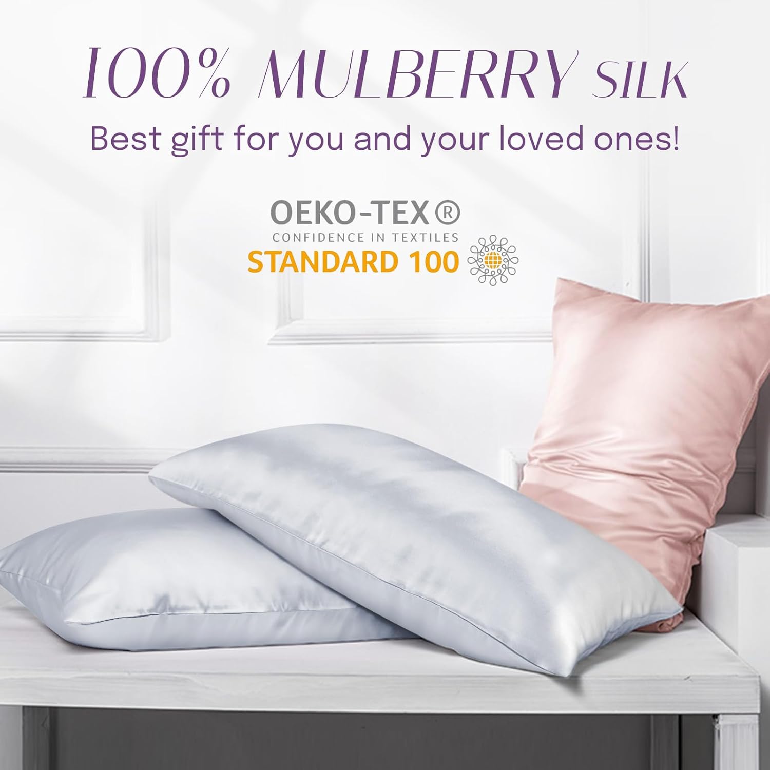 OLESILK 100% Silk Pillowcase for Hair and Skin, Both Sides 16 Momme Real Natural Mulberry Silk, with Hidden Zipper and Gift Box, 1pc, Silvergrey, 50x75cm