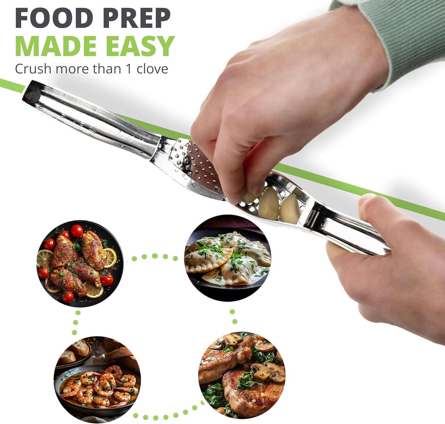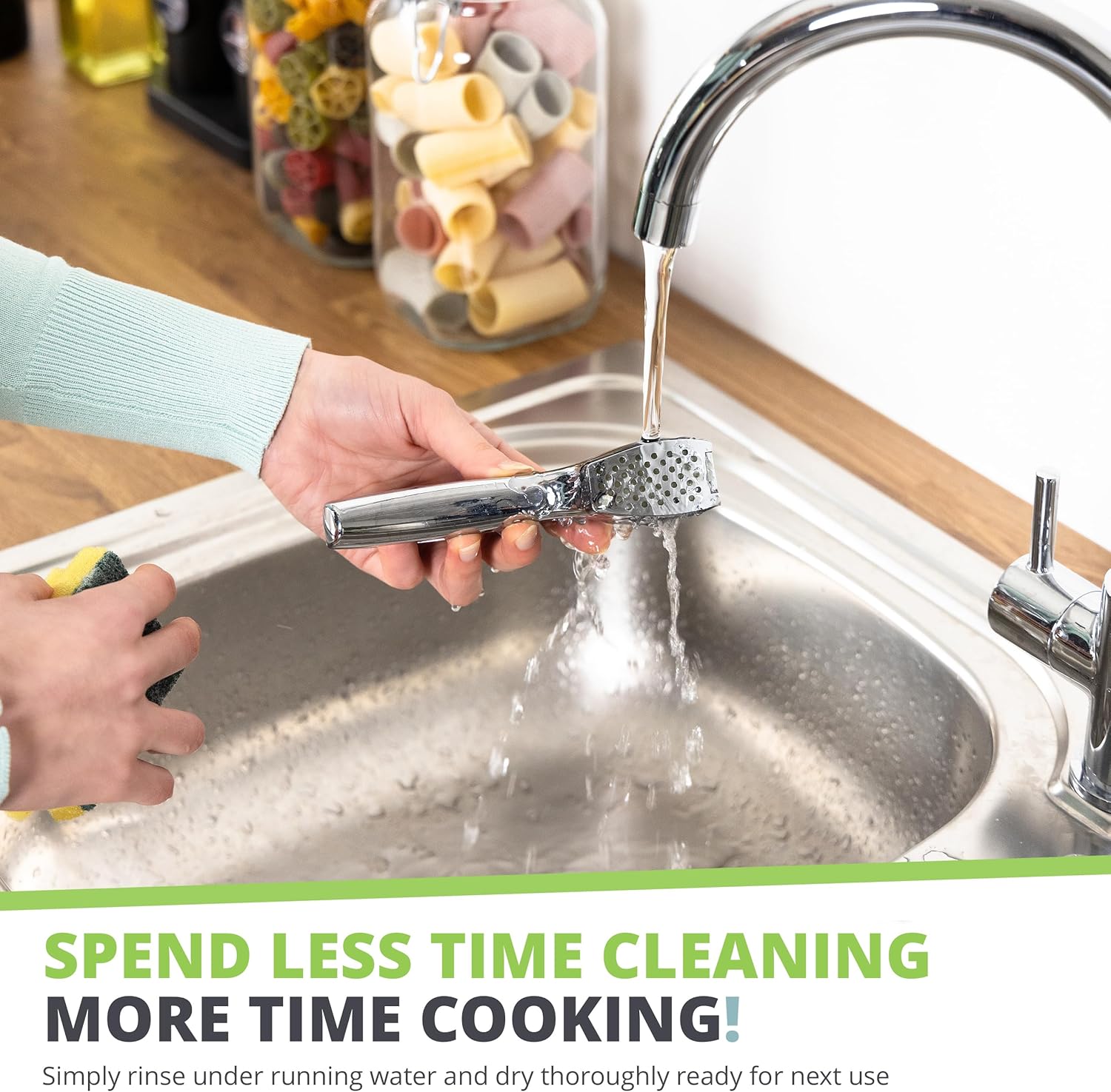 ⏳ NEVER THROW AWAY A GARLIC PRESS AGAIN: Backed up with a Lifetime Guarantee, our garlic mincer is superior to other inferior garlic crushers. Super strong and durable. Built to withstand a mammoth-sized crushing