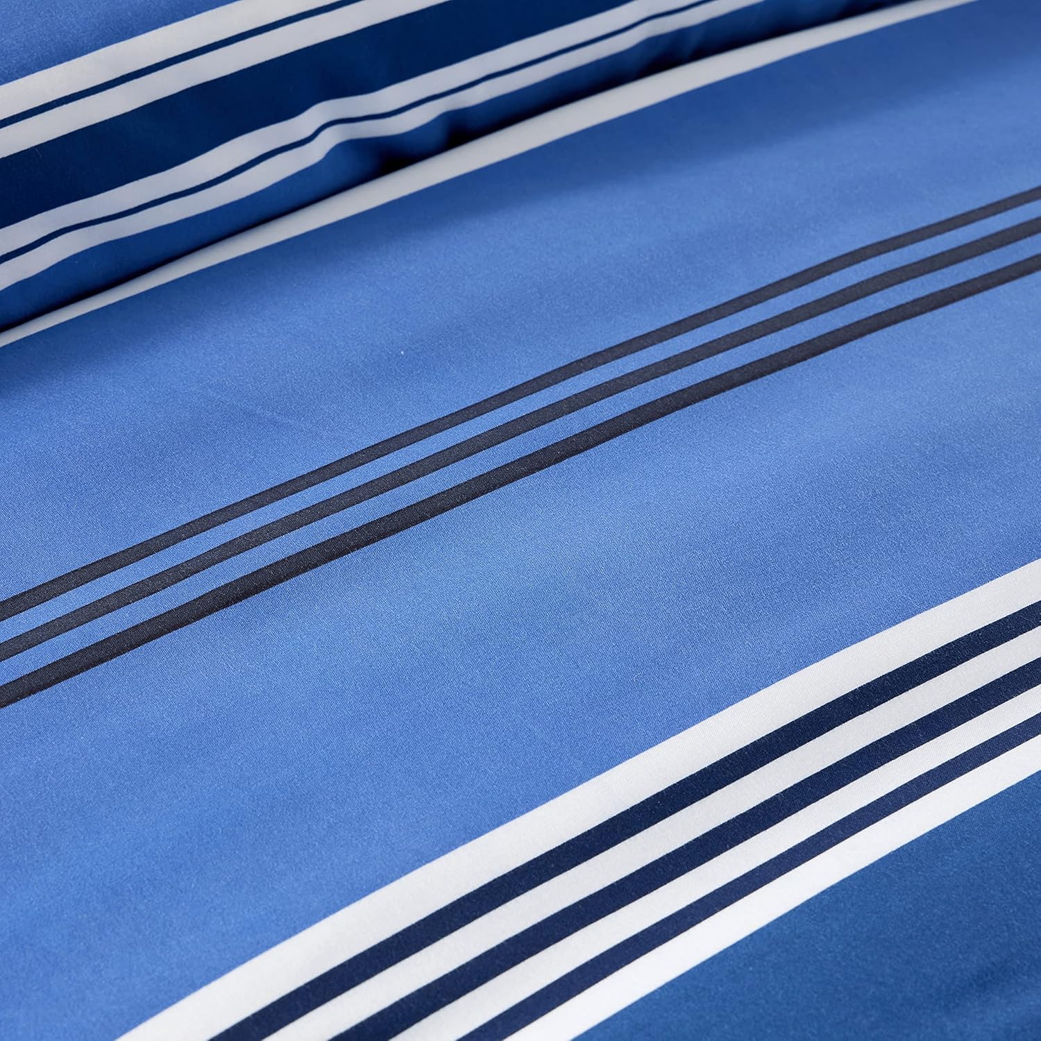 Olivia Rocco Easy Care Printed Duvet Cover Set 100% Polyester Breathable Stylish Comforter Reversible Quilted Bedding Bed Sets With Pillowcases HARLOW STRIPES DUVET SET, BLUE DOUBLE