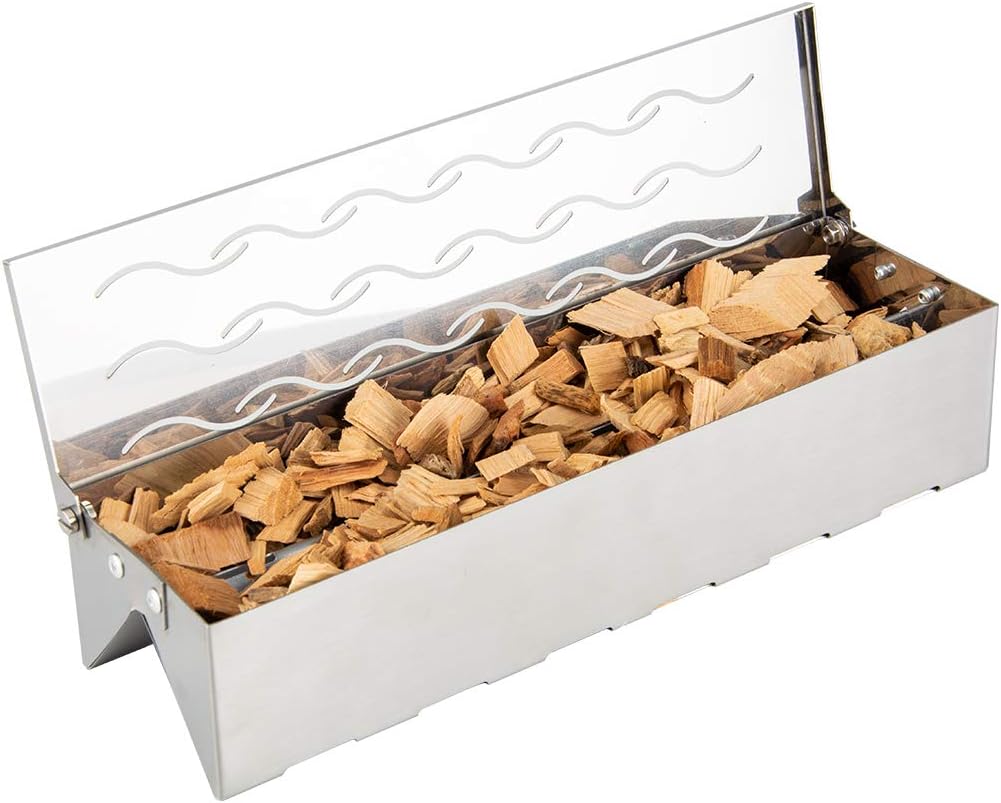 Thanks to the unique hinged design, you can quickly add or remove wood chips from the smoker box while in use. Easy to empty, clean and refill your smoker box